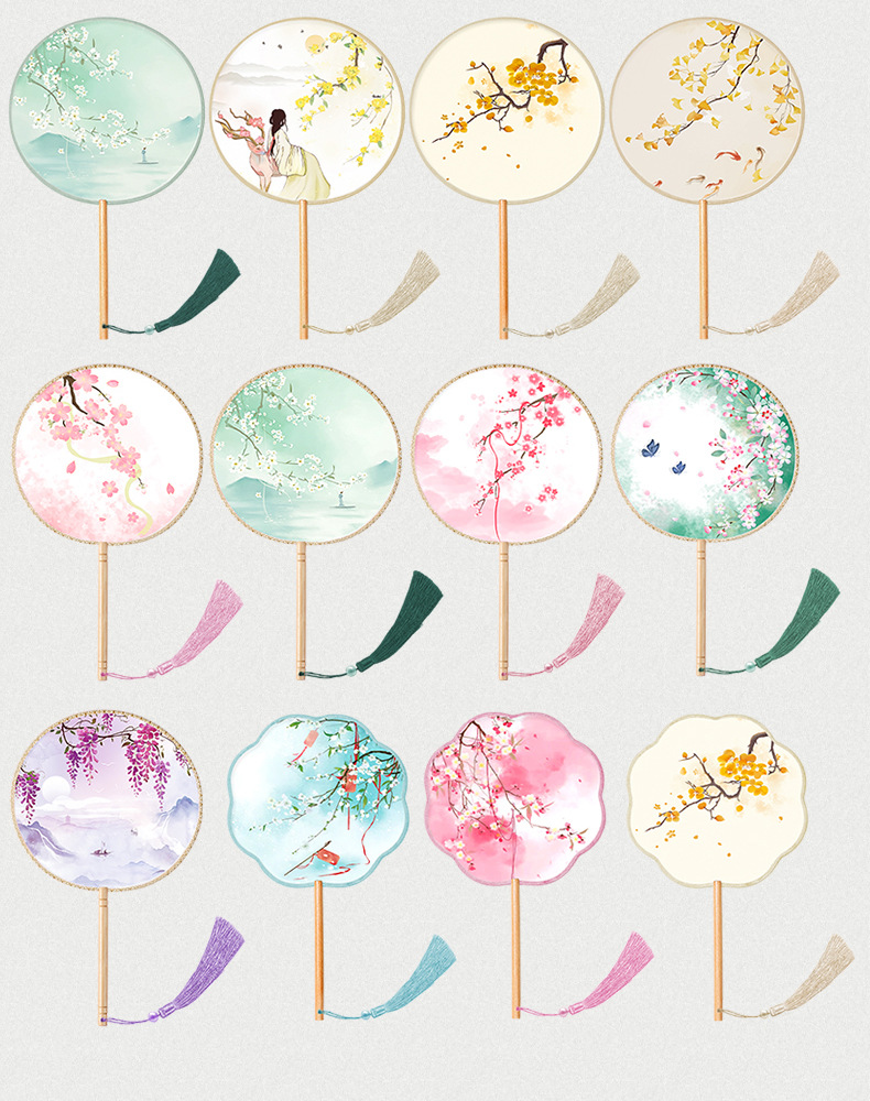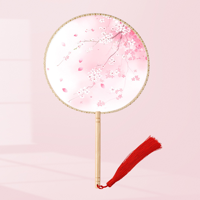 둥근 팬 고대 스타일 팬 어린이 여름 반투명 긴 손잡이 댄스 팬소녀 고대 중국 의류 청삼 수 놓은 작은 라운드 팬스토어 가기