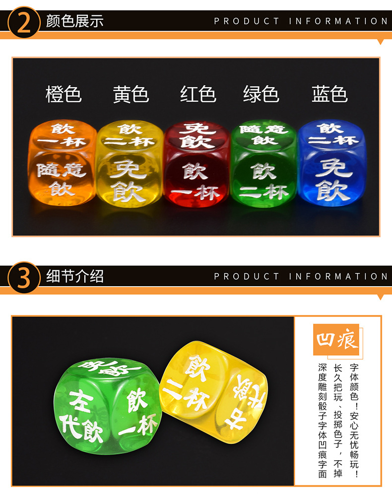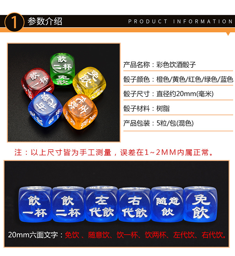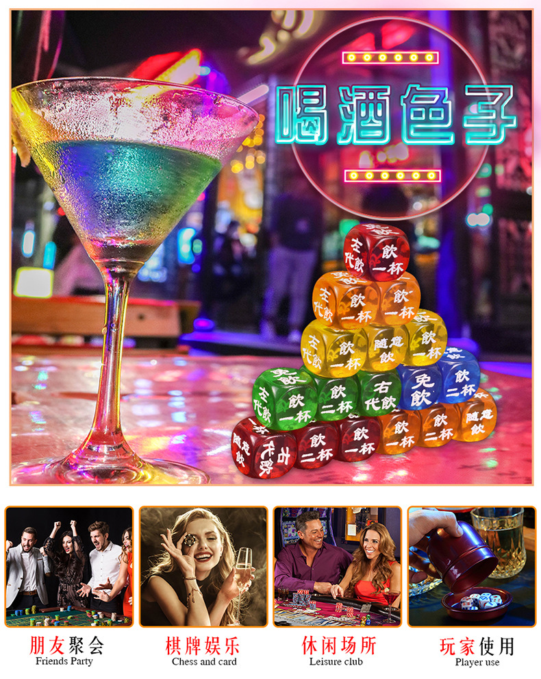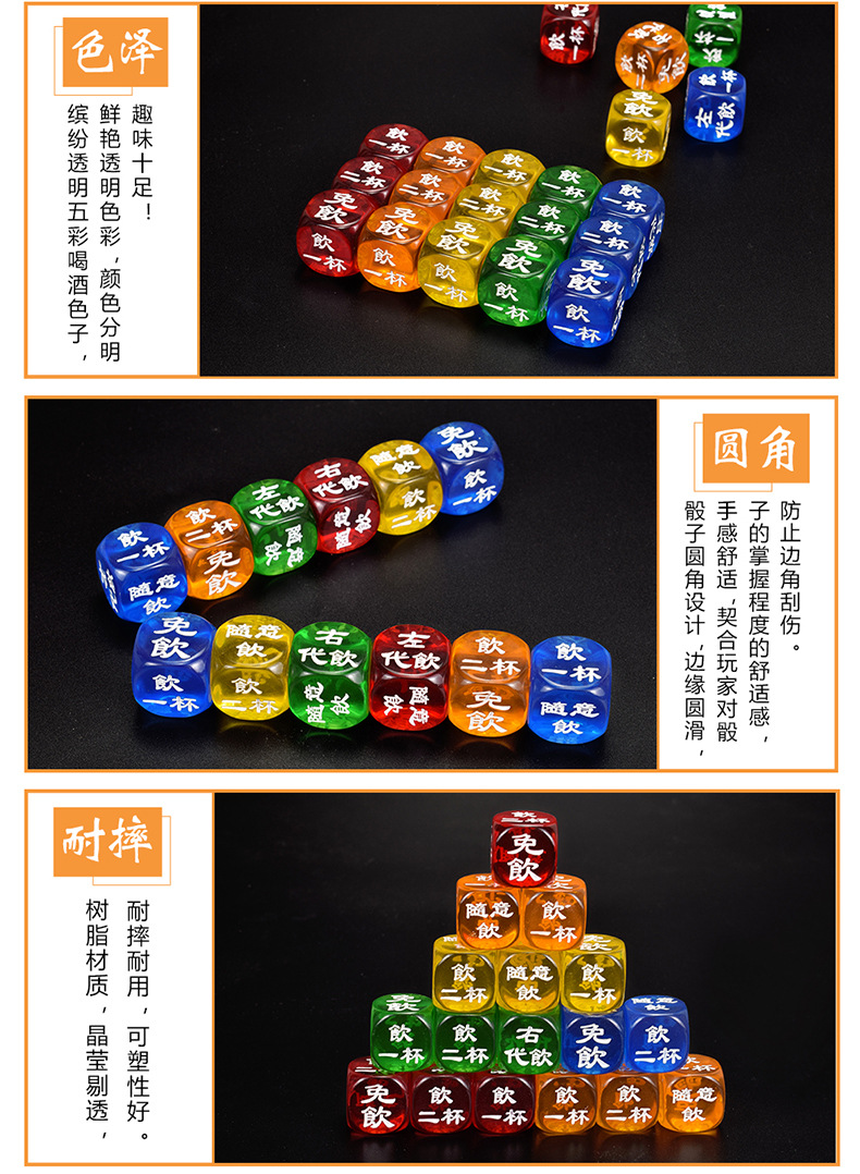 투명한 Yusheng 바 술 주사위 체 게임 소품 KTV 컬러 드링킹 주사위 대형 체 드링킹스토어 가기