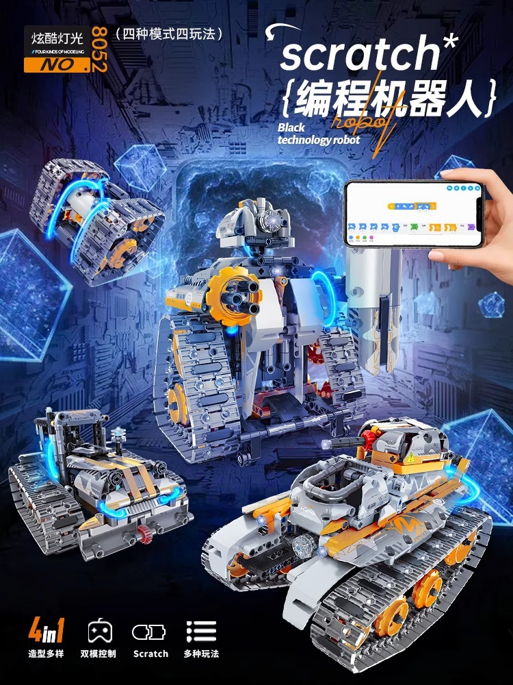 Wanzhi 8051-8053app 원격 제어 프로그래밍 Wally 로봇 조립 빌딩 블록 작은 입자 소년 장난감 도매스토어 가기