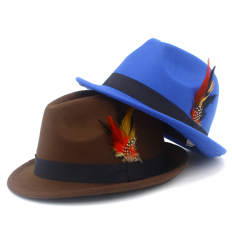 국경 간 뜨거운 깃털 작은 토퍼 모자 영국 스타일 펠트 모자 패션 다기능 파티 신사 모자 빈티지 재즈 모자