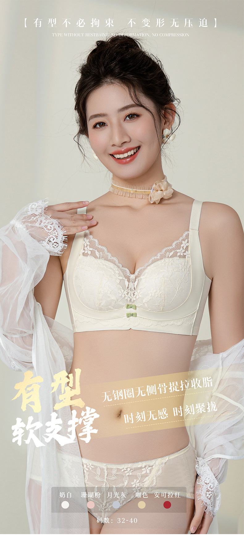 2025 새로운 스타일 속옷 여성 여름 No Side Bone No Steel Ring Small Chest Push-up Zero Sense Mask 조정 가능한 Para Breast Bra