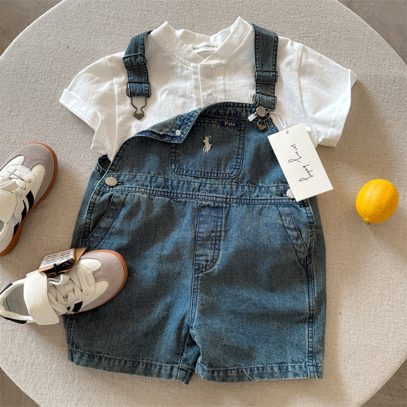 어린이 반바지 2025 여름 새로운 남녀 아동복 위빙 자수 스트랩 반바지 아기의 데님 슬링 트렌디스토어 가기