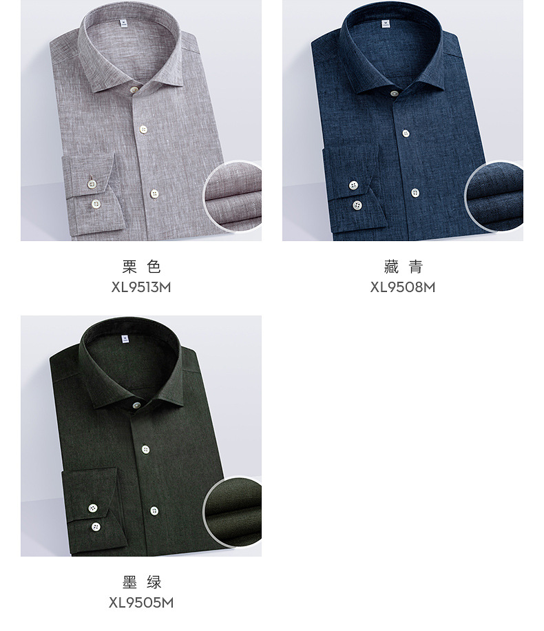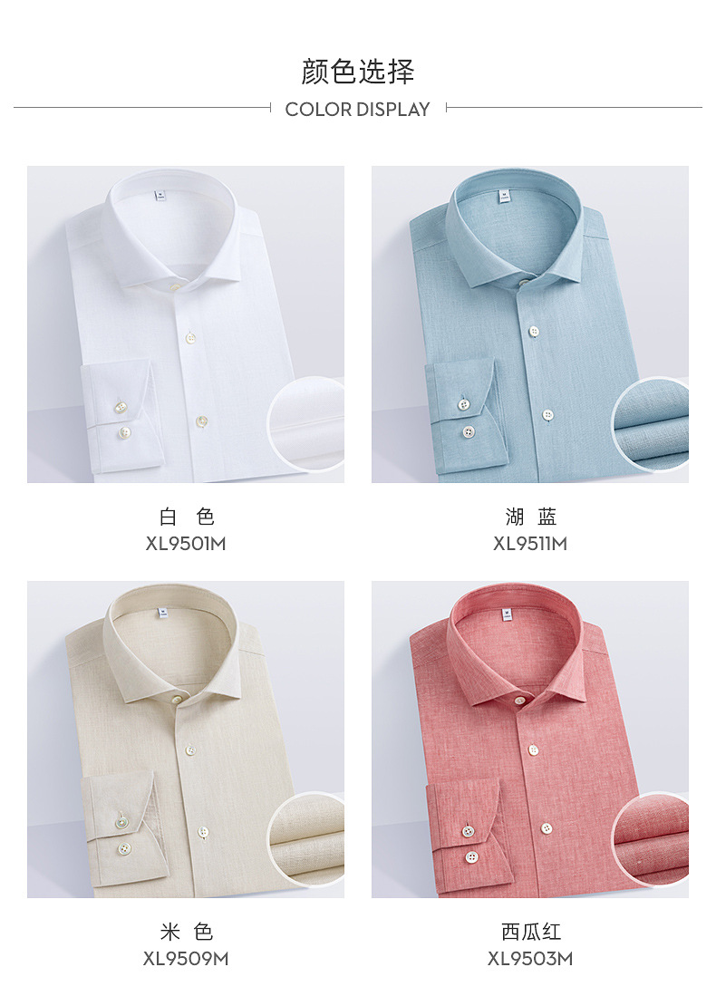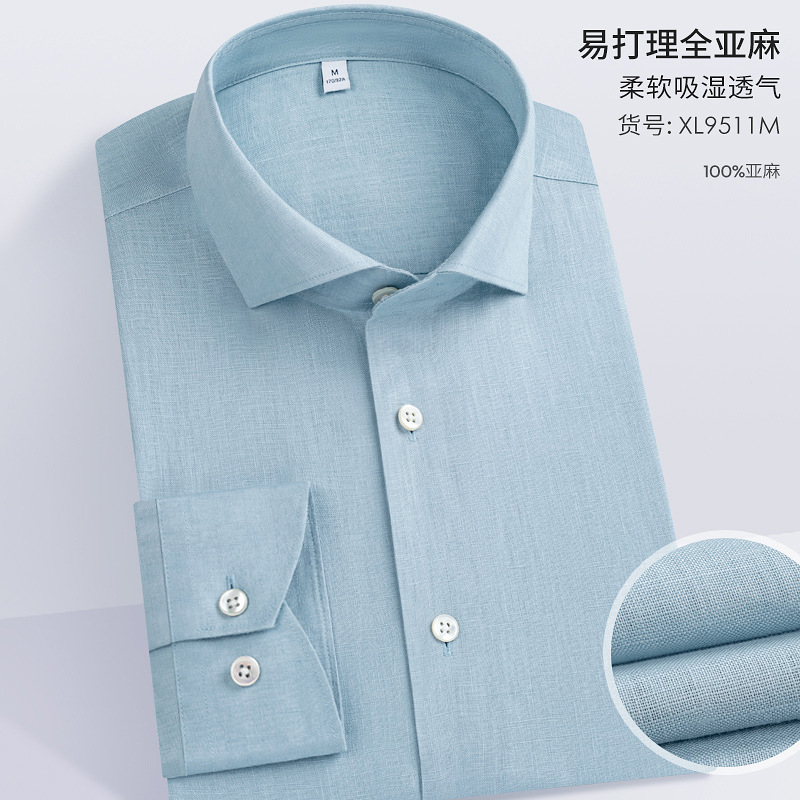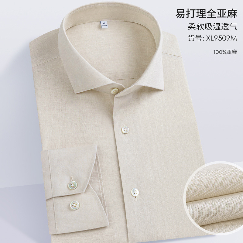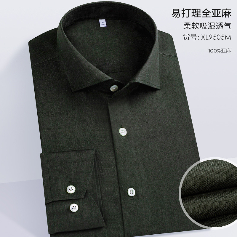 남성용 긴 소매 셔츠 2025 봄 새로운 남성 비즈니스 캐주얼 비 다림질 솔리드 컬러 슬림 올 리넨 셔츠스토어 가기