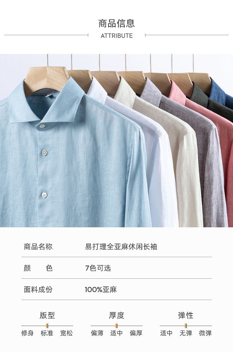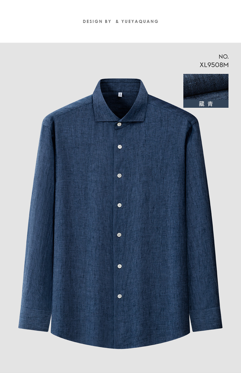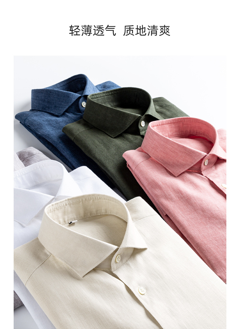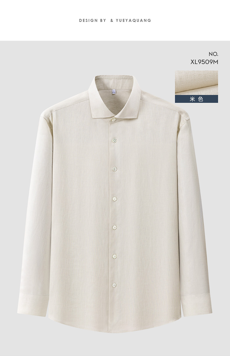 남성용 긴 소매 셔츠 2025 봄 새로운 남성 비즈니스 캐주얼 비 다림질 솔리드 컬러 슬림 올 리넨 셔츠스토어 가기