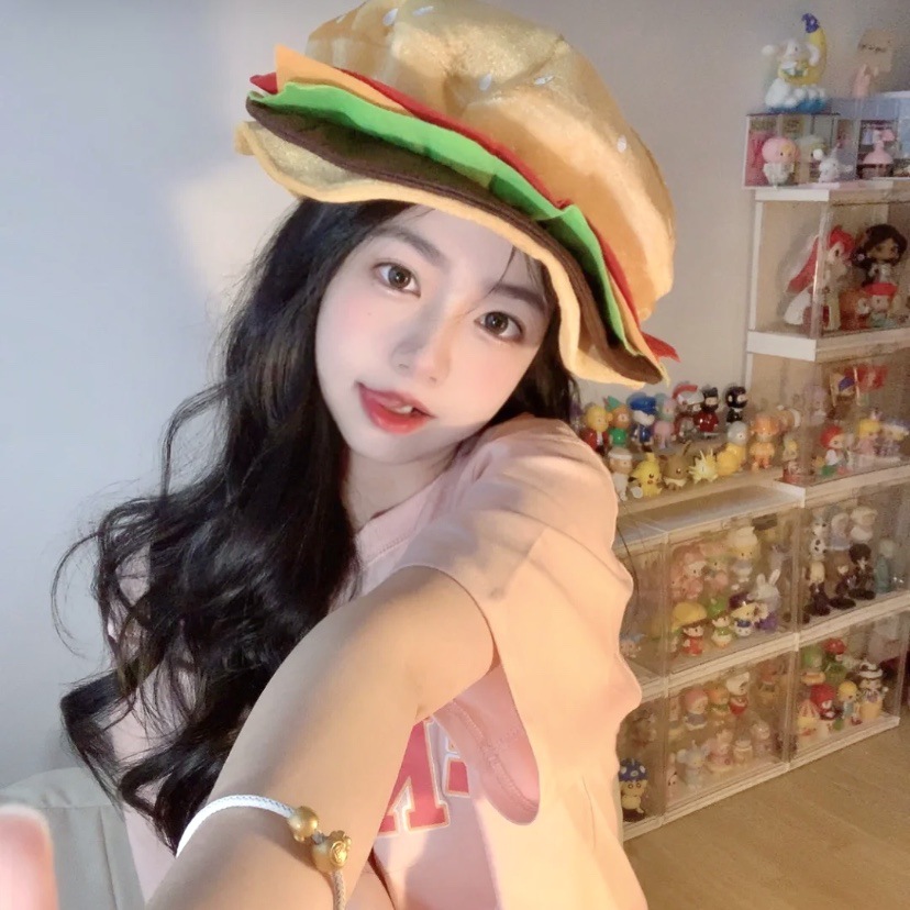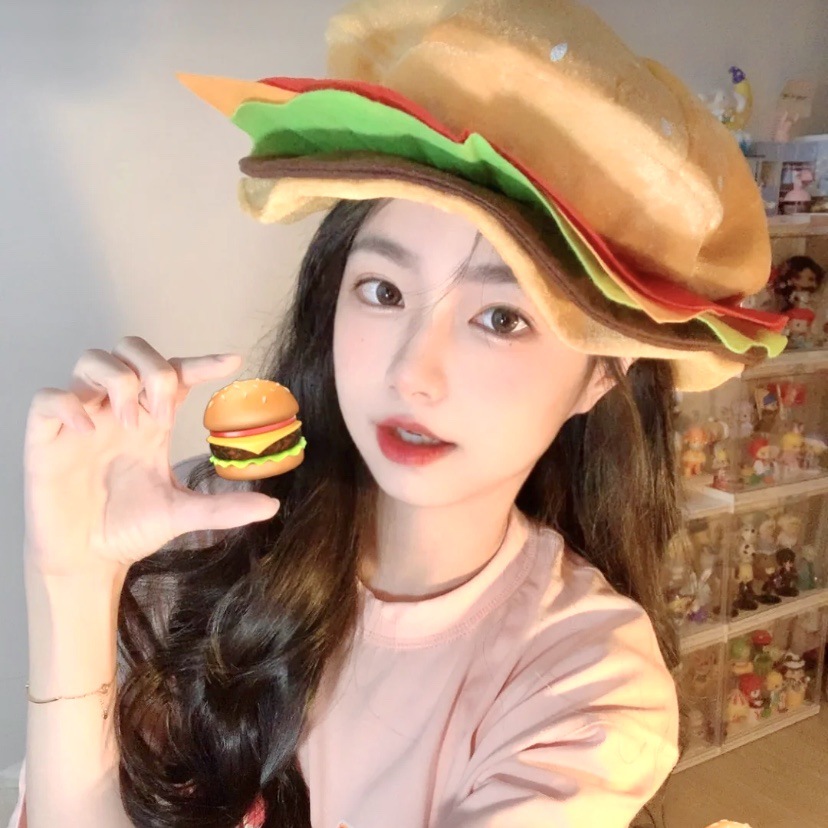 햄버거 모자 사진 소품으로 작은 빨간 책의 소리를 흔들어 온라인 인기있는 여자 친구 귀여운 소녀 셀카 장식 용품