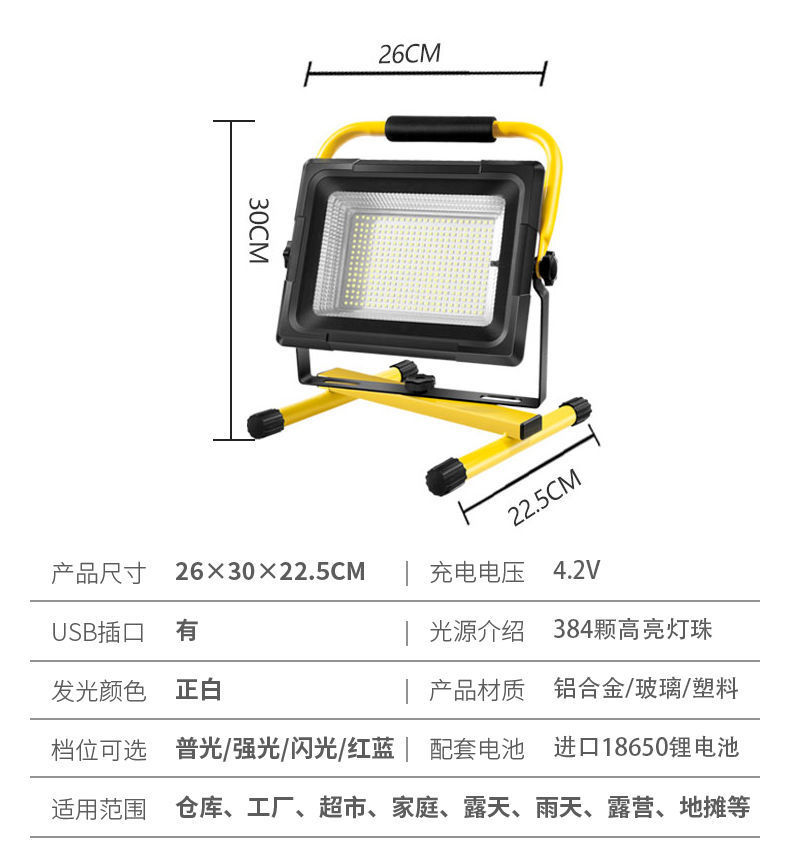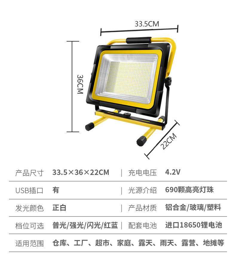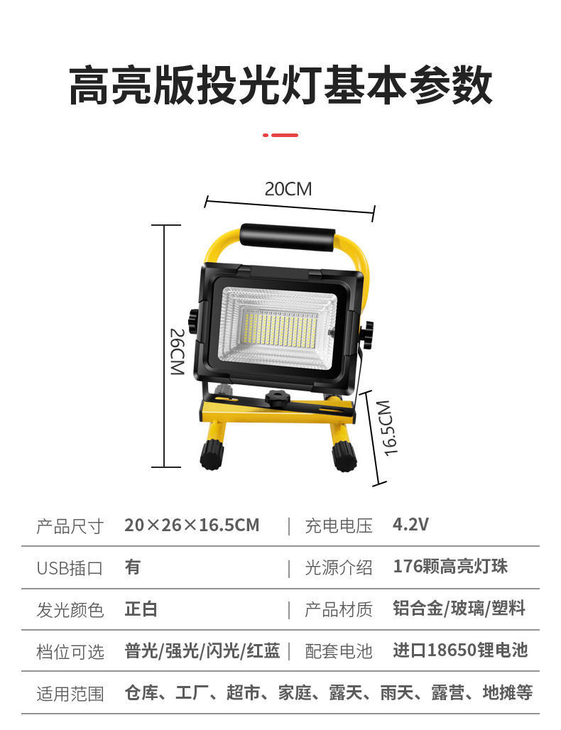 LED 강한 빛 야외 휴대용 사이트 조명 초과 근무 조명 슈퍼 밝은 엔지니어링 건설 충전식 프로젝션 조명 도매