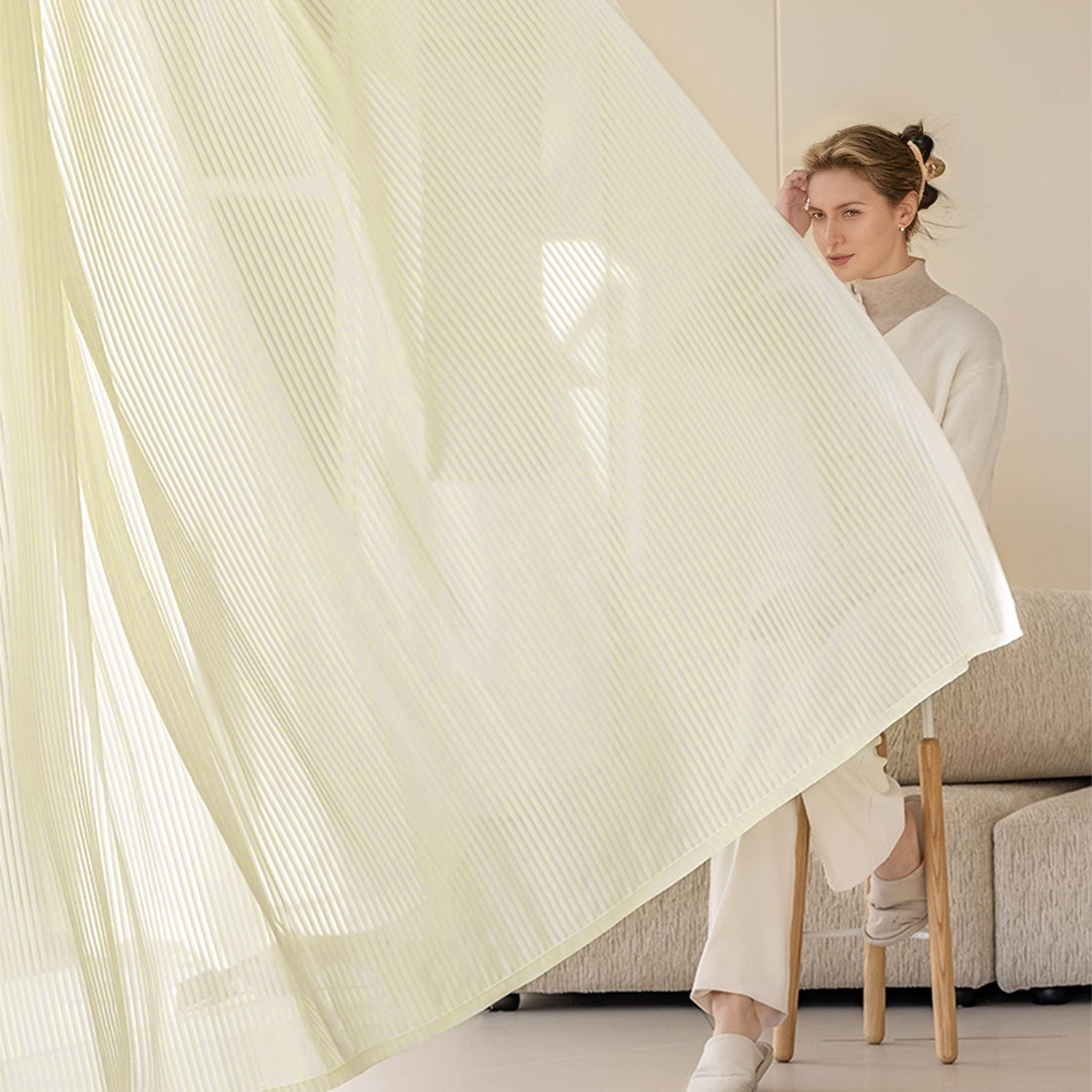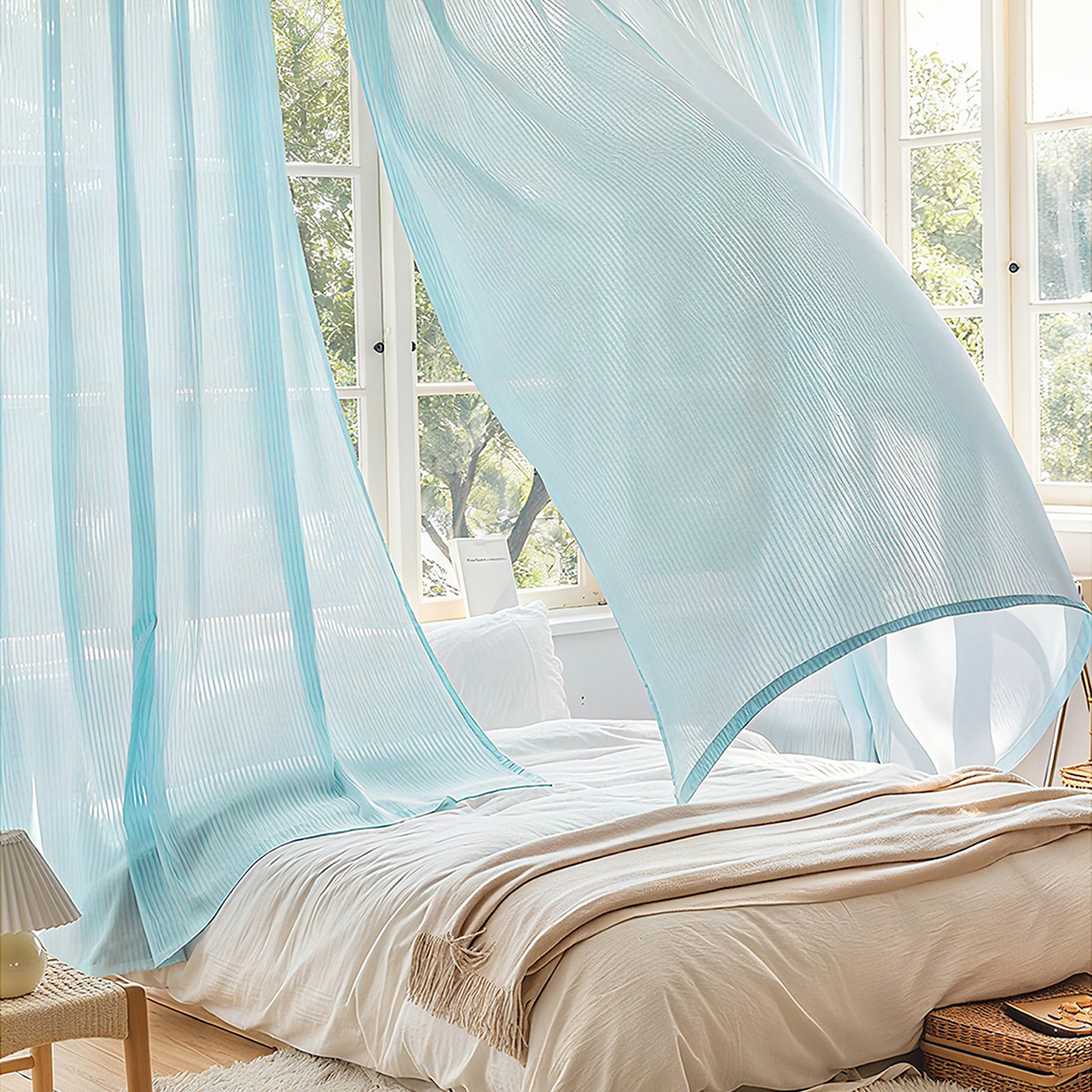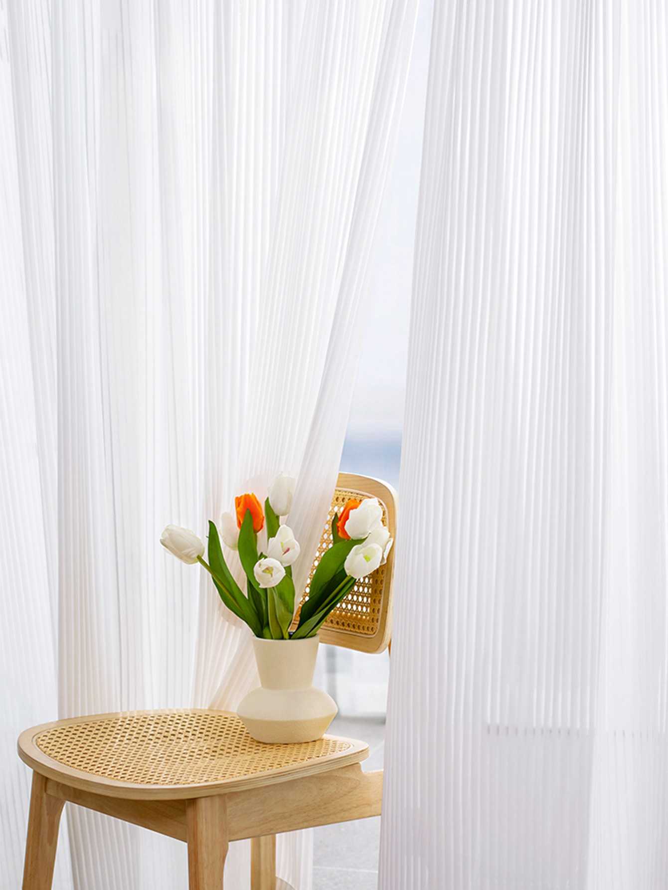 크로스보더 수직 블라인드, 드림 커튼, 거실, 침실, 발코니, 흰색 거즈, 불투명, TEMU 배송