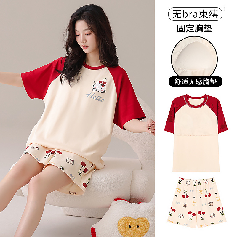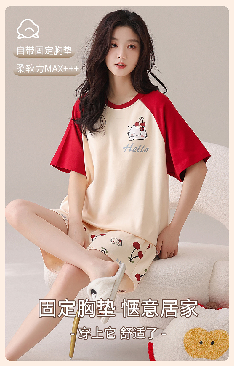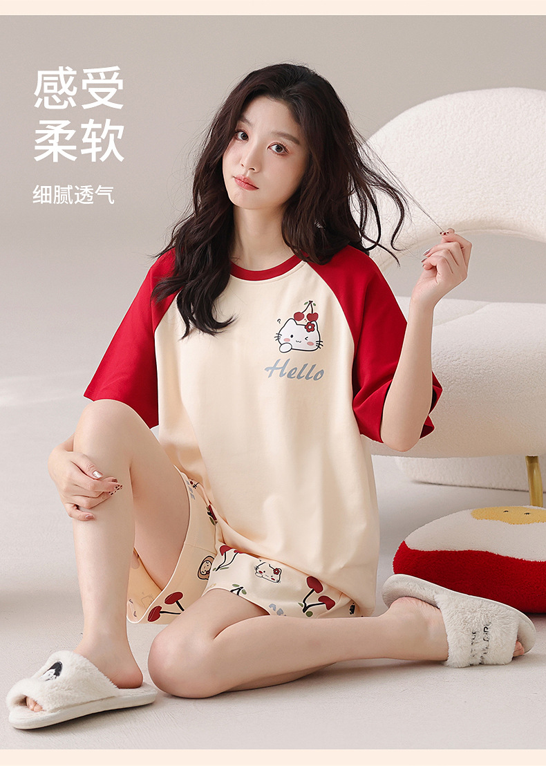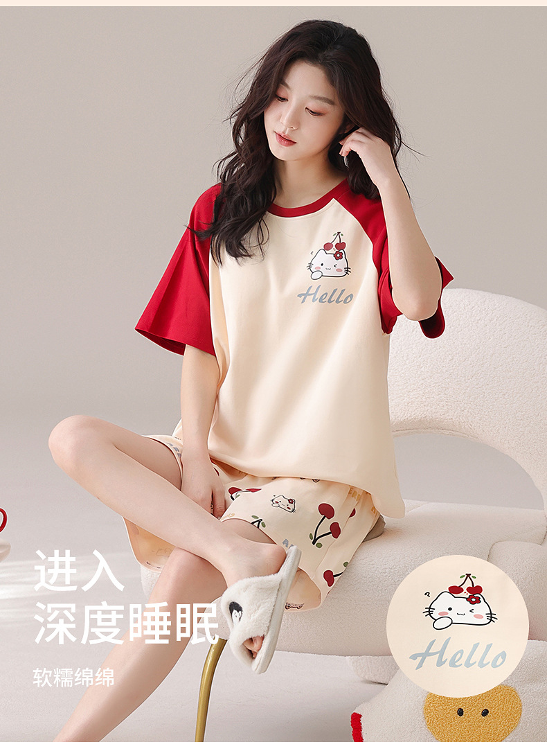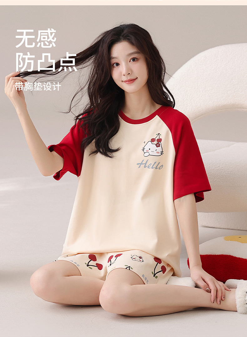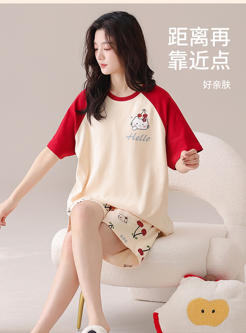 잠옷 여성 여름면 반팔 반바지 여름 2025 년 새 봄과 가을 여름 작은 여성 홈 의류 세트스토어 가기