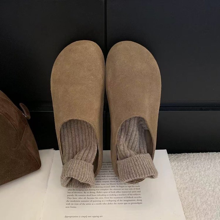 부드러운 가죽 버전 ~ 내부 높이 증가 두꺼운 바닥 보켄 신발 여성의 외장 봄 및 여름 2025 새로운 모리 레트로 바오터우 반 슬리퍼스토어 가기