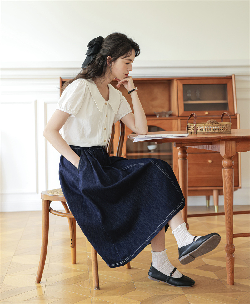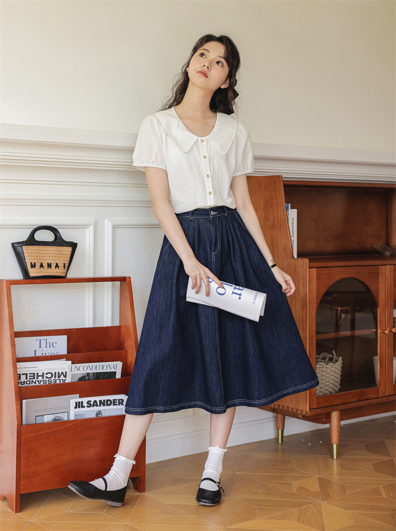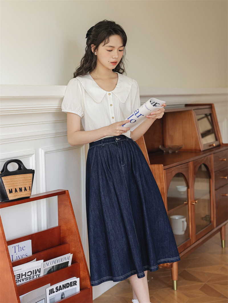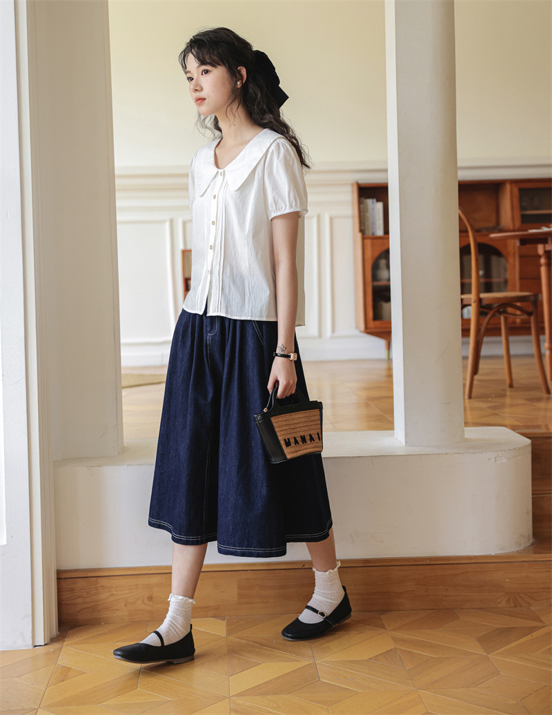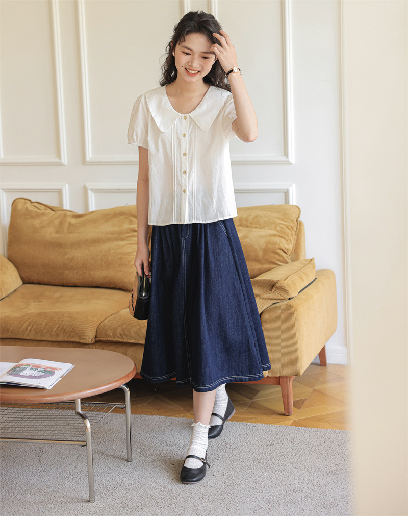 리얼 샷 2025 여름 새로운 프랑스 달콤한 순수한 나이 감소 인형 칼라 작은 거품 짧은 소매 흰색 셔츠 여성스토어 가기