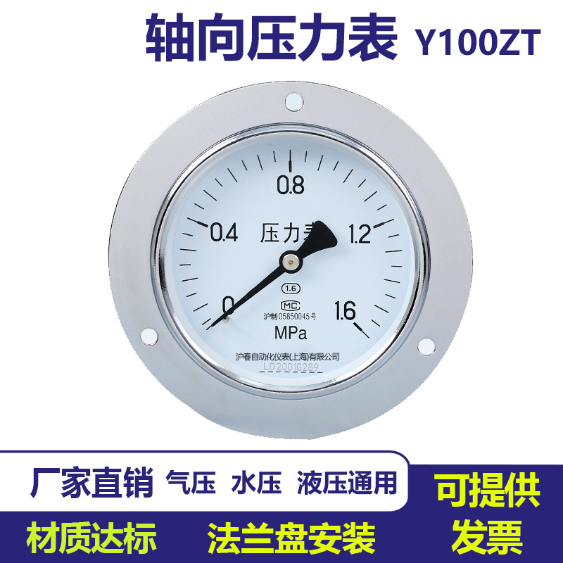 축방향 엣지 압력계 Y-100ZT 진공계 공기압계 수압계 증기계 오일 압력계 패널 장착스토어 가기