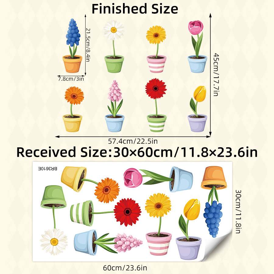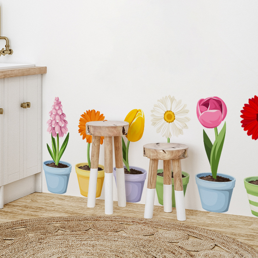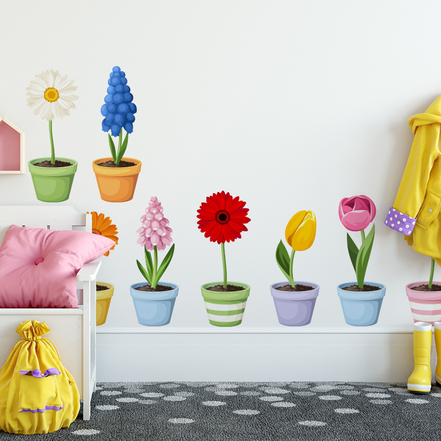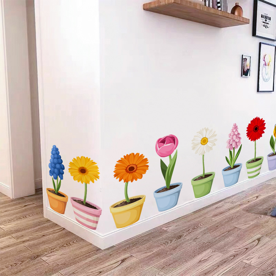 BR3610E 만화 식물 꽃 화분 자체 접착 벽 스티커 어린이 방 유치원 베이스 보드 장식 스티커스토어 가기