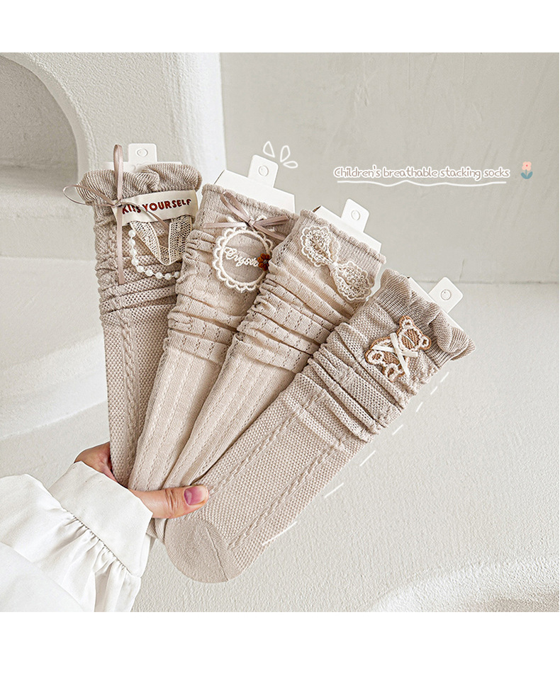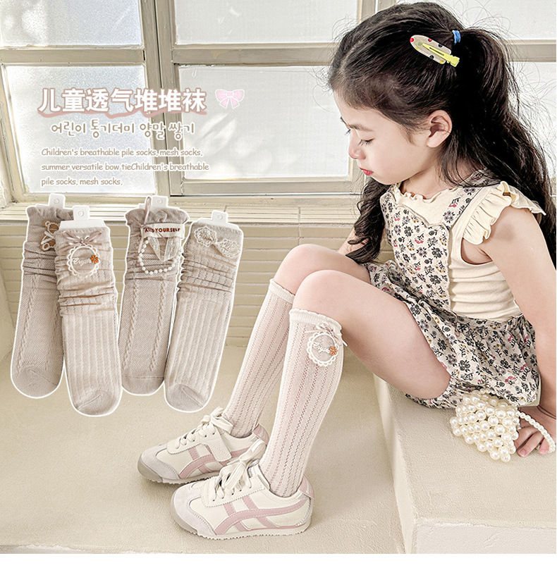 소녀 스타킹 여름 얇은 종아리 양말 학생 반 양말 어린이 양말 메쉬 파일 양말 달콤한 튜브
