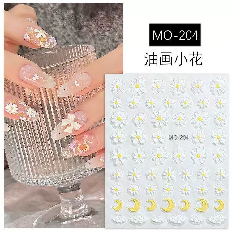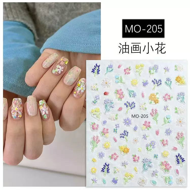 네일 아트 봄 다채로운 유화 꽃 스티커 2025 새로운 꽃 패턴 3 차원 양각 네일 데칼 쥬얼리스토어 가기