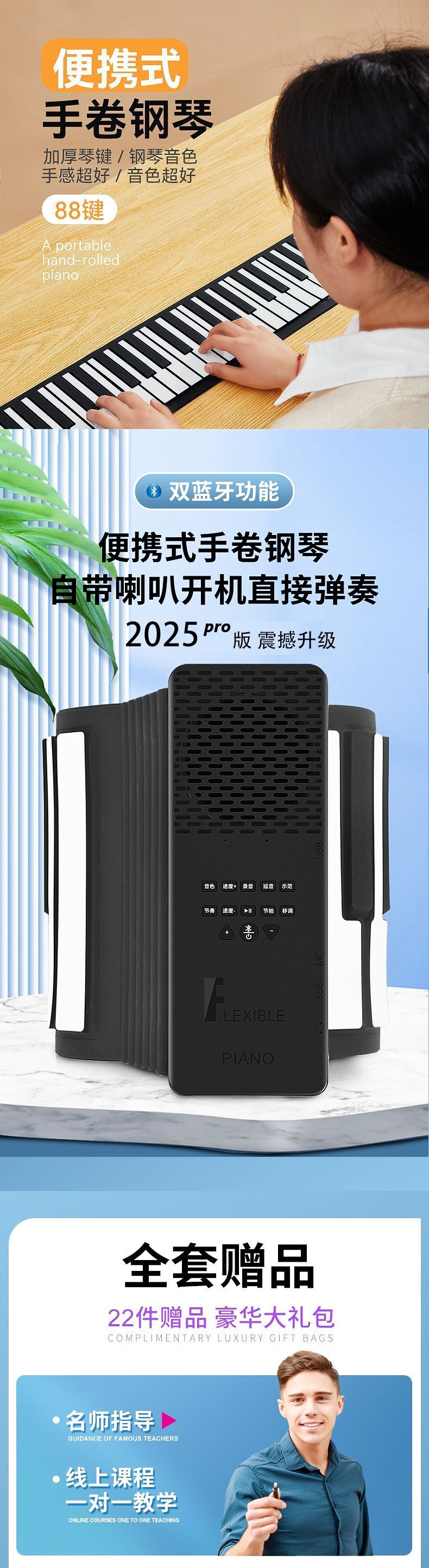 전자 소프트 핸드 롤 피아노 88 키보드 두꺼운 전문 버전 기숙사 간단한 접이식 휴대용 여성 초보자 유치원 교사