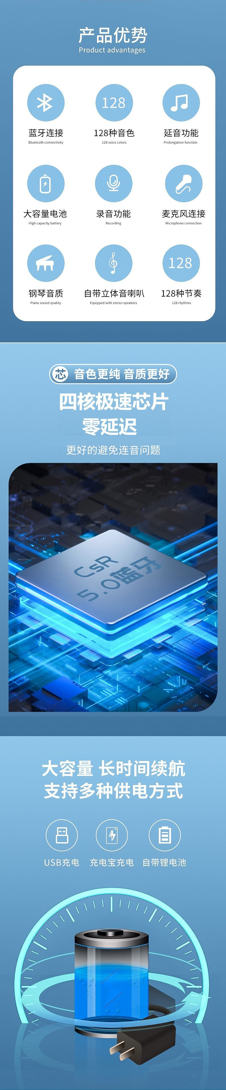 • 88개 키에는 듀얼 블루투스 + 스티커 + 헤드폰 + 교재 등 외부 사운드가 제공됩니다.