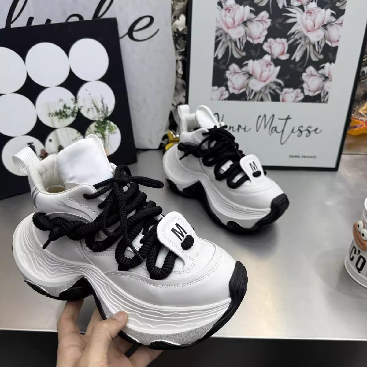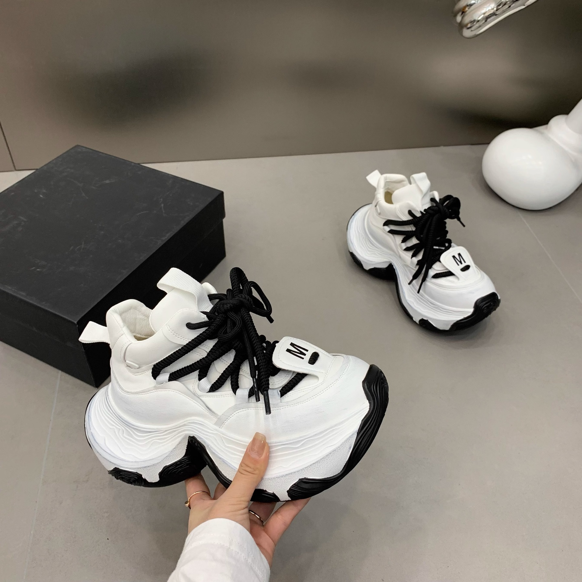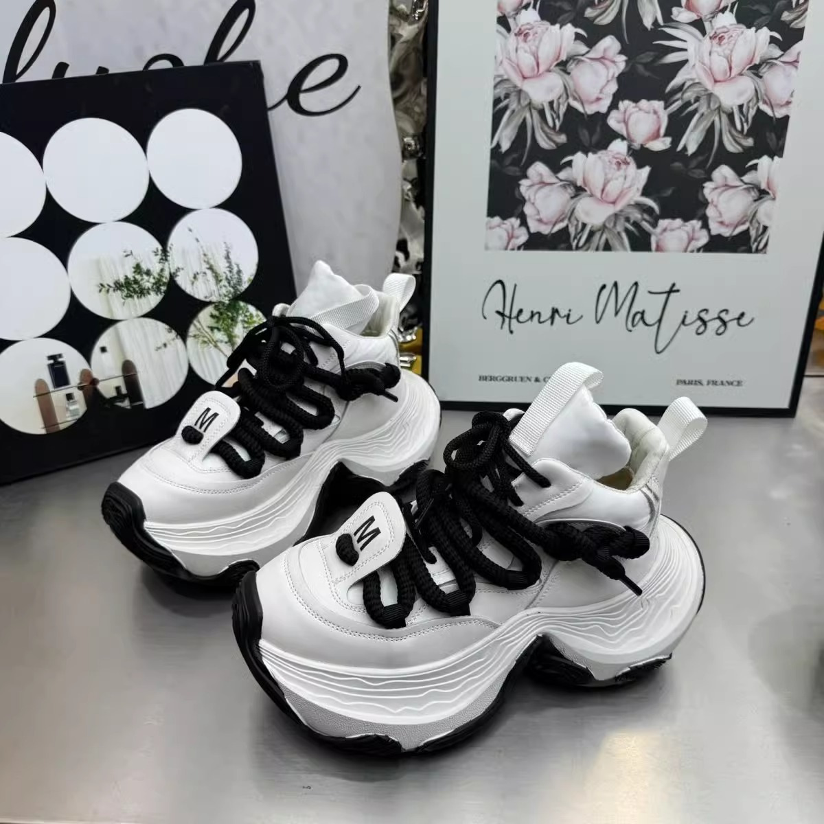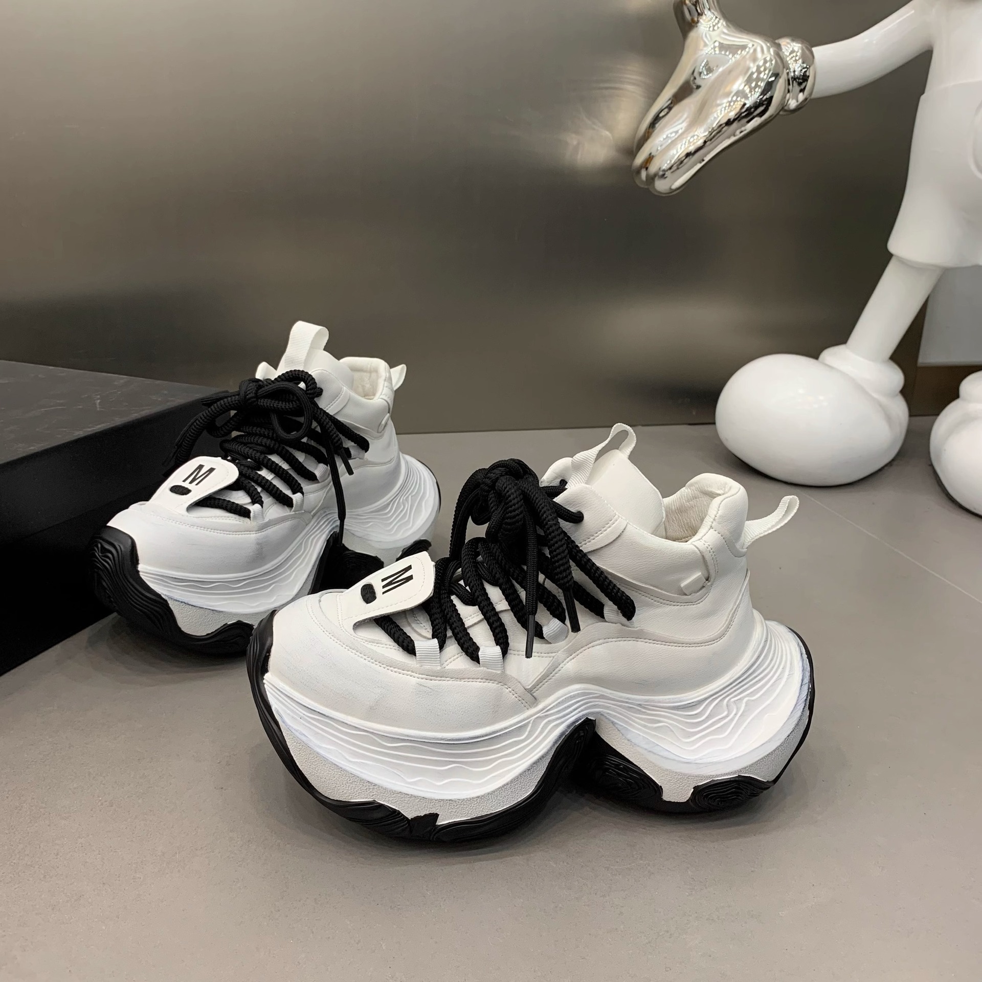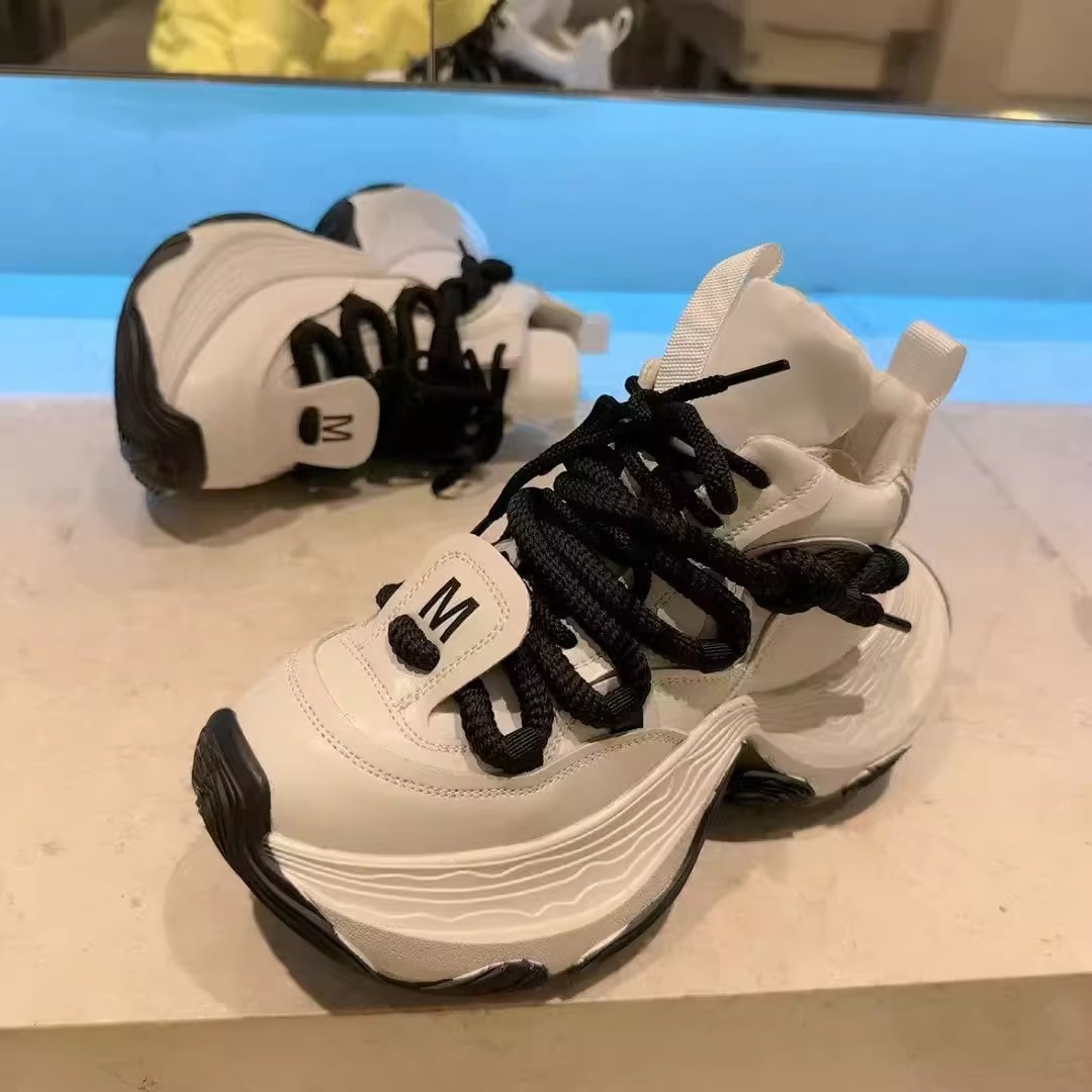 여성을위한 유럽 아빠 신발 2025 봄 새로운 하이 탑 레이스 업 플랫폼 두꺼운 밑창 여성을위한 캐주얼 스포츠 신발스토어 가기