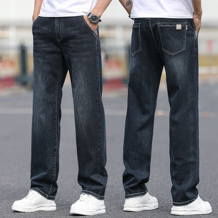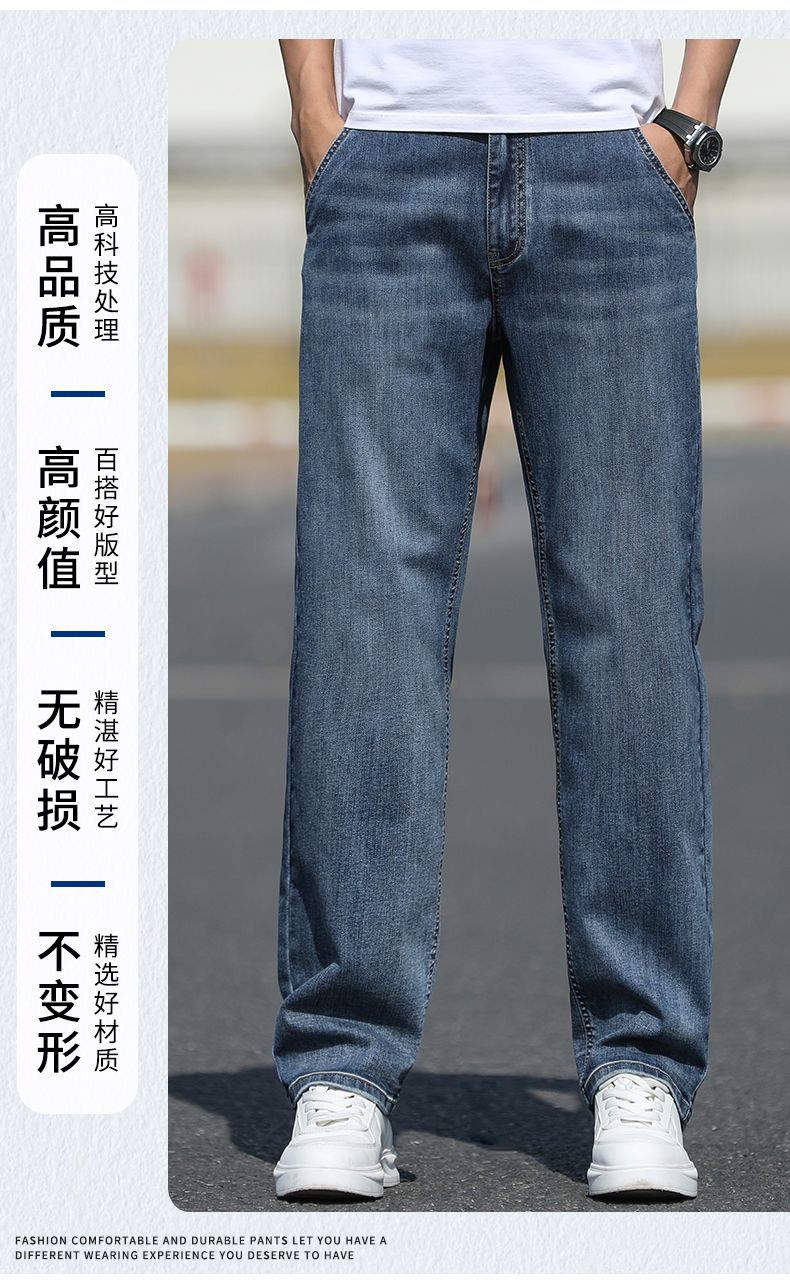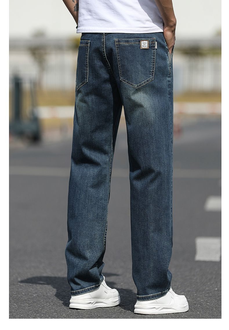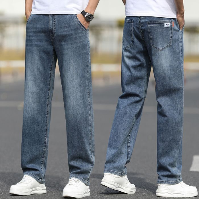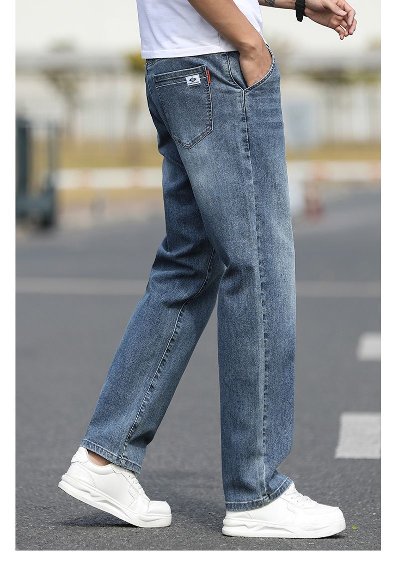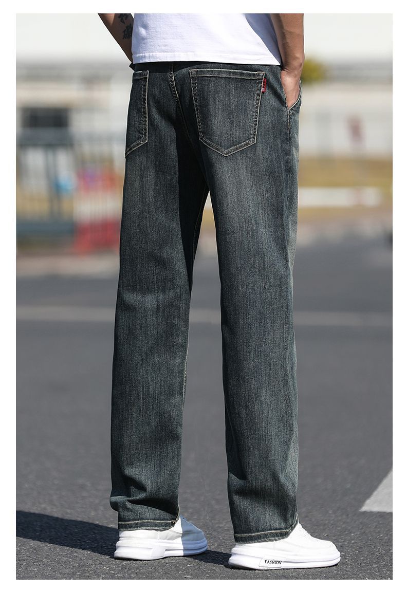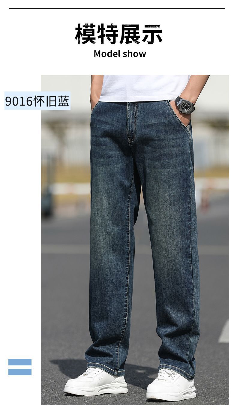 2025 새로운 하이 엔드 스트레치 청바지 남성 하이 엔드 센스 슬림 핏 스트레이트 플러스 사이즈 캐주얼 롱 팬츠 남성 패션스토어 가기