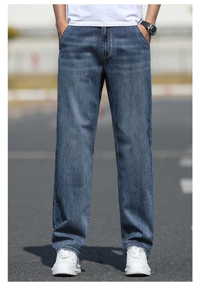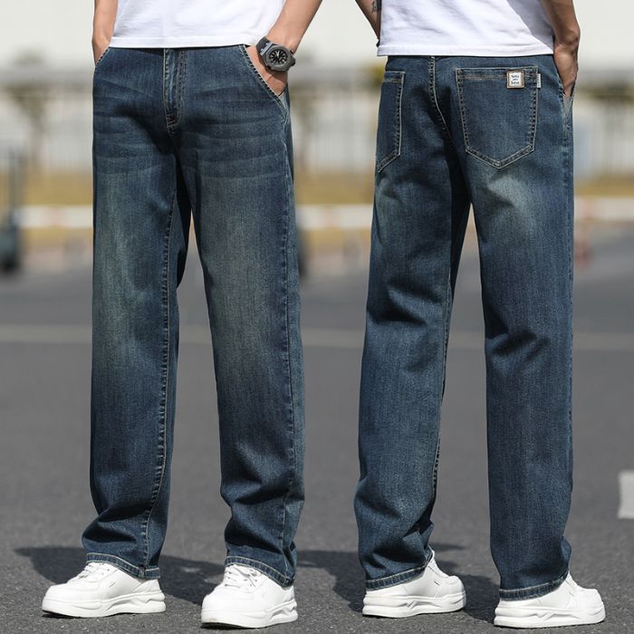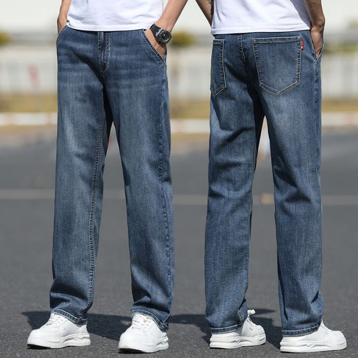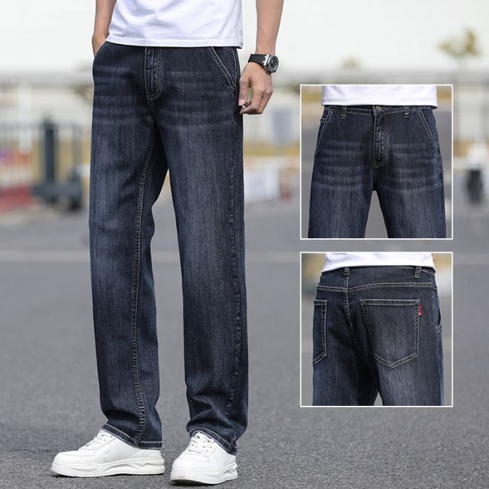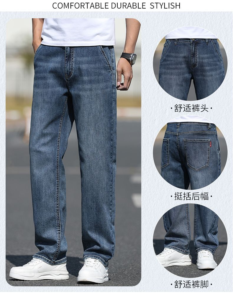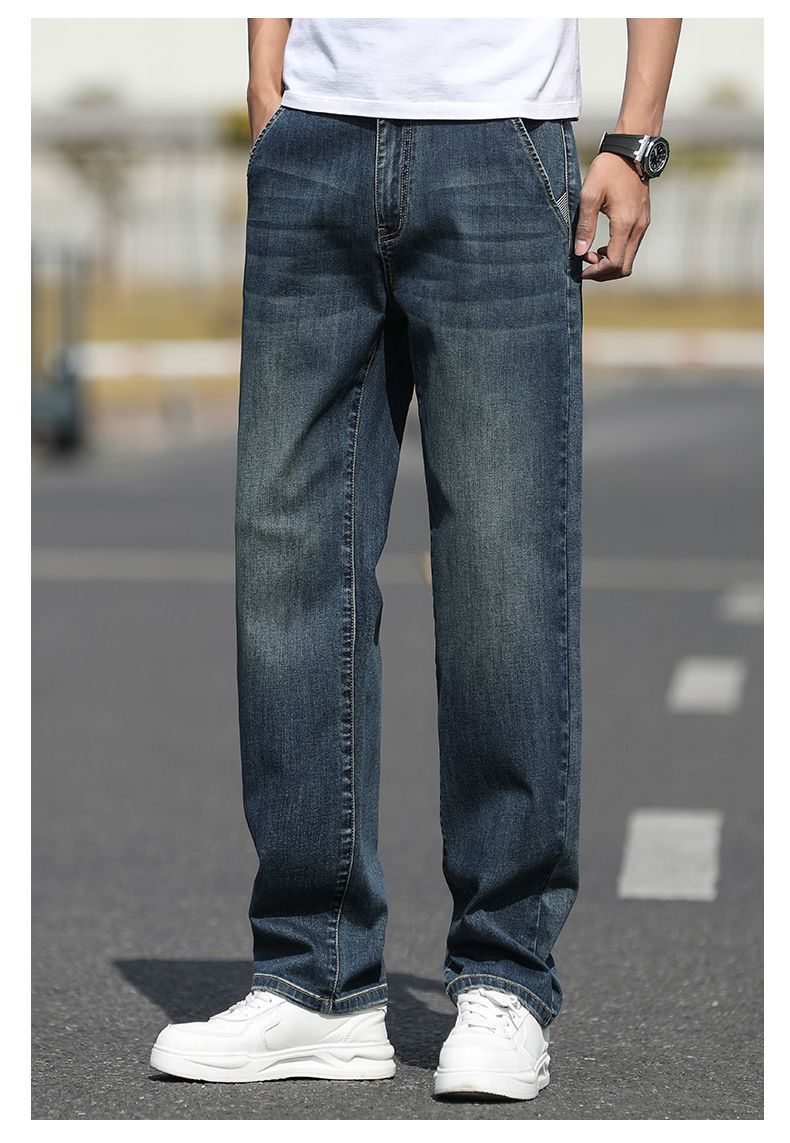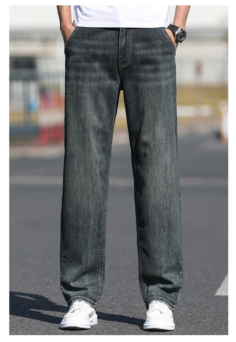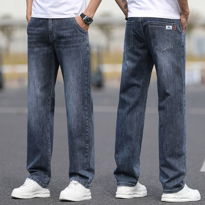 2025 새로운 하이 엔드 스트레치 청바지 남성 하이 엔드 센스 슬림 핏 스트레이트 플러스 사이즈 캐주얼 롱 팬츠 남성 패션스토어 가기