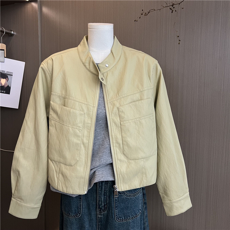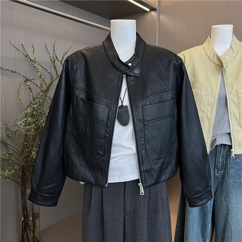 봄 캐주얼 재킷 틈새 새로운 재킷 지퍼 모든 경기 짧은 가죽 서양 스타일 2025 여성 디자인 단색스토어 가기