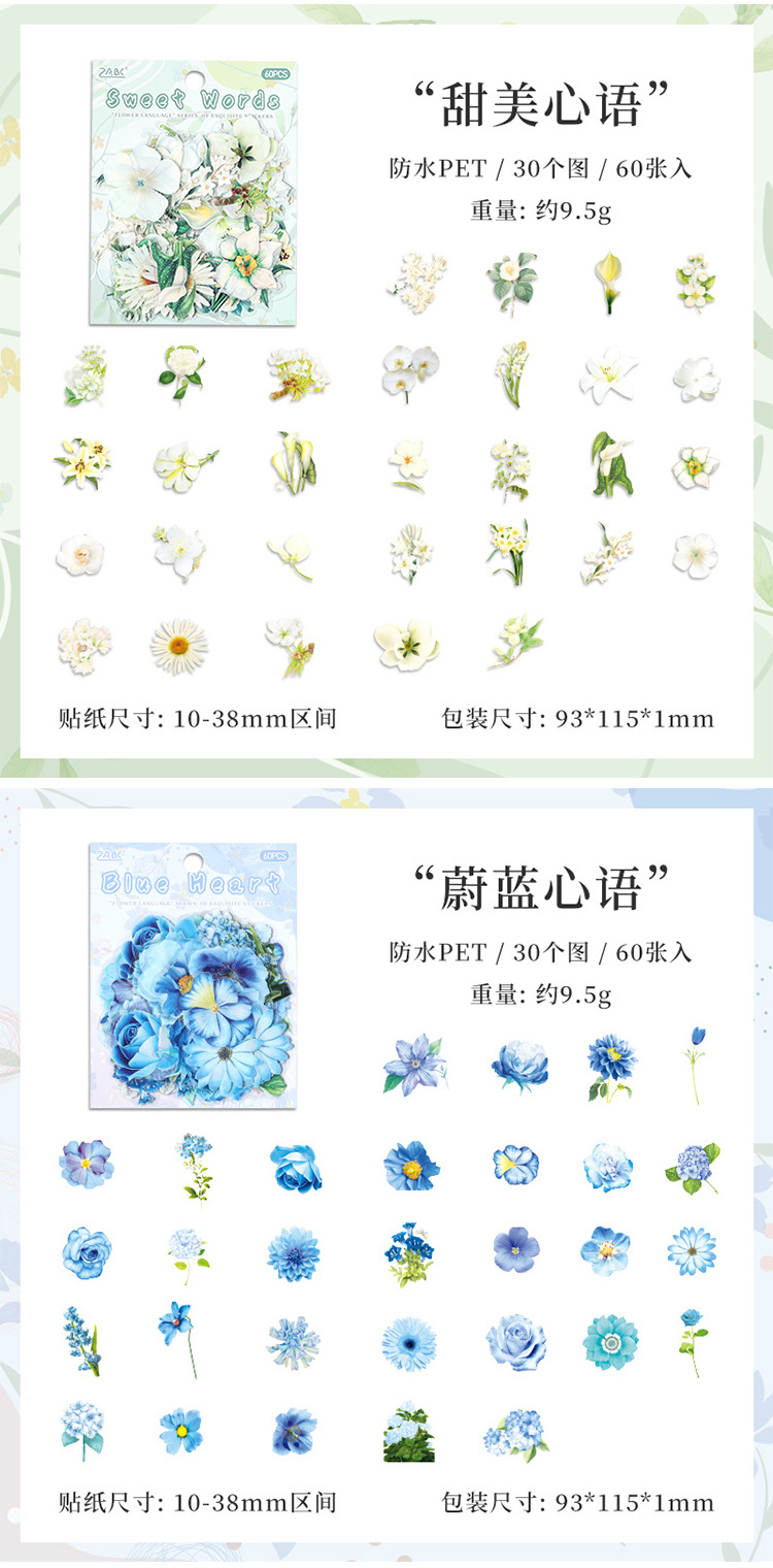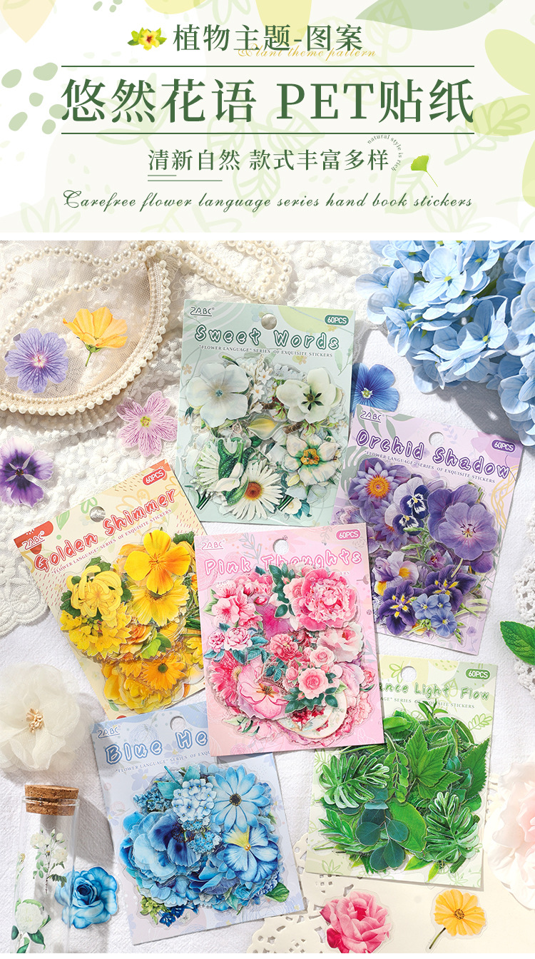 여유롭게 꽃 언어 애완 동물 스티커 손 계정 스티커 패키지 국경 스티커 레트로 꽃 스티커 손 계정 스티커스토어 가기