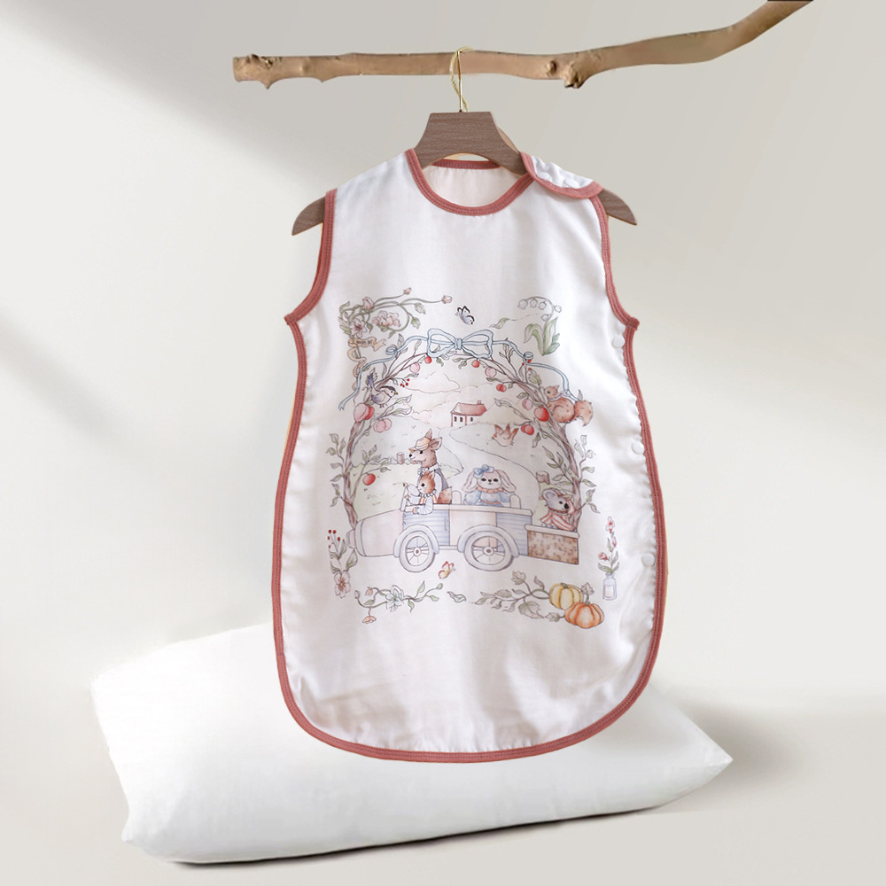 봄 여름 대나무 면 침낭은 부드럽고 편안하며 흡수성과 통기성이 뛰어난 2피스 신생아 발차기 방지 4겹 아기 침낭입니다.