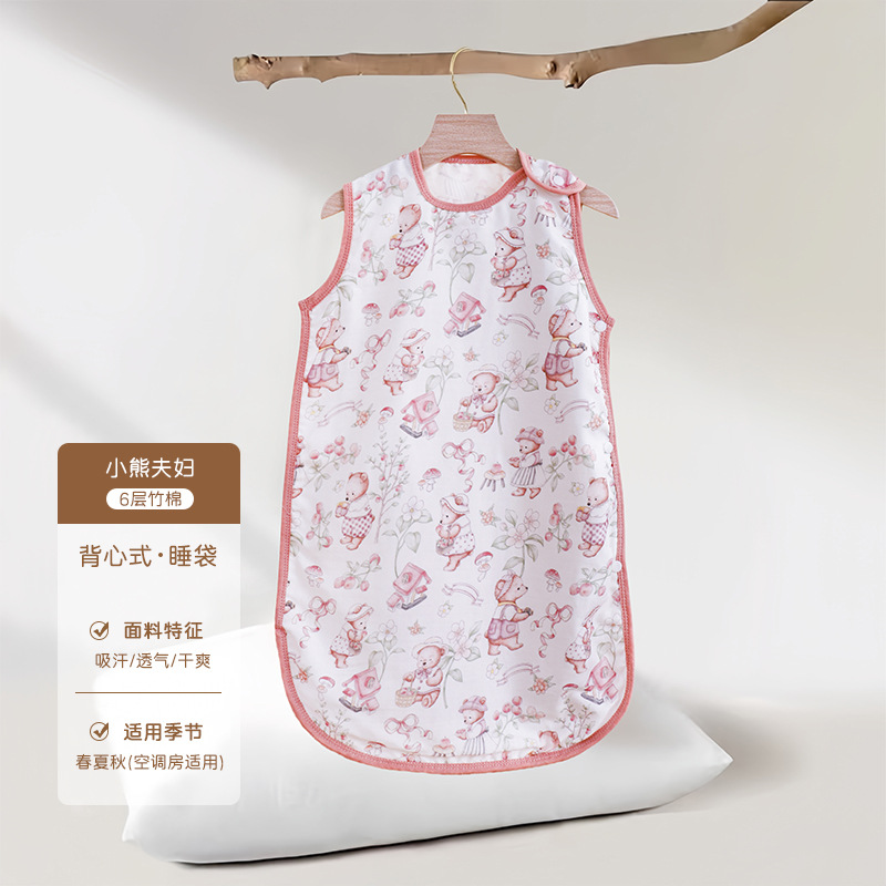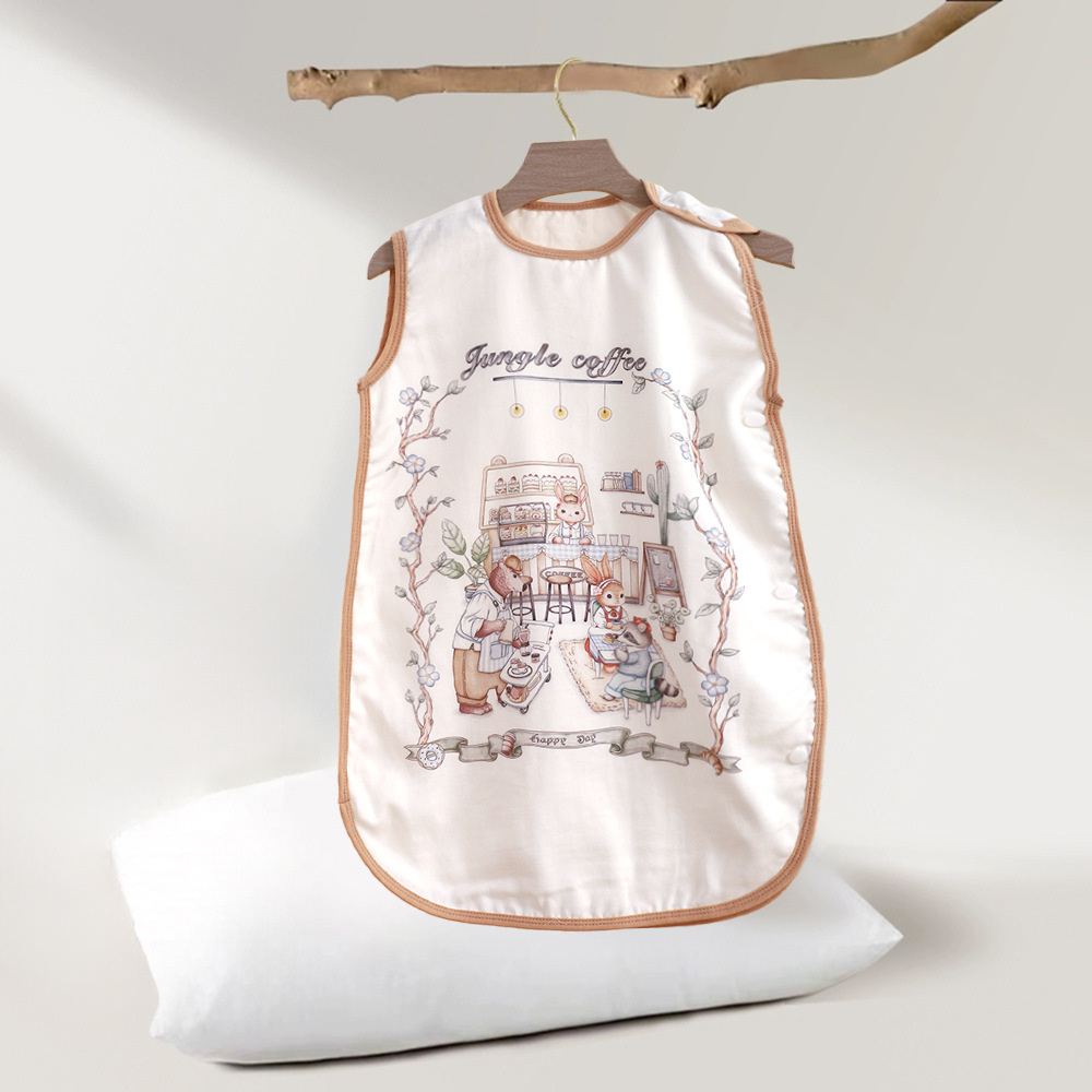 봄 여름 대나무 면 침낭은 부드럽고 편안하며 흡수성과 통기성이 뛰어난 2피스 신생아 발차기 방지 4겹 아기 침낭입니다.스토어 가기