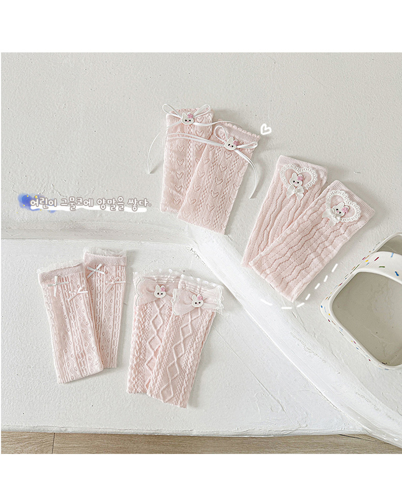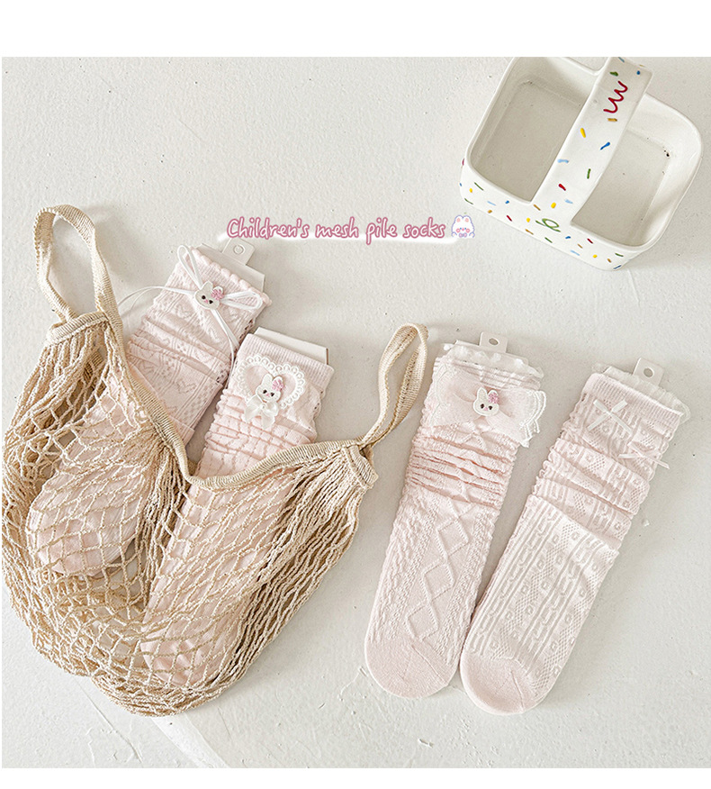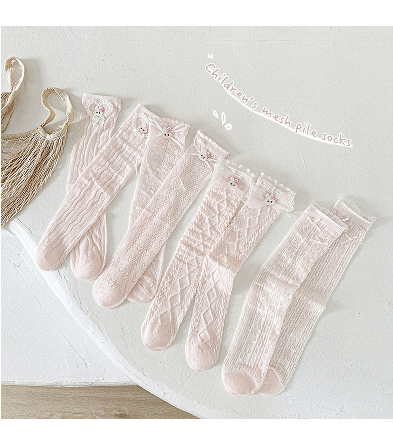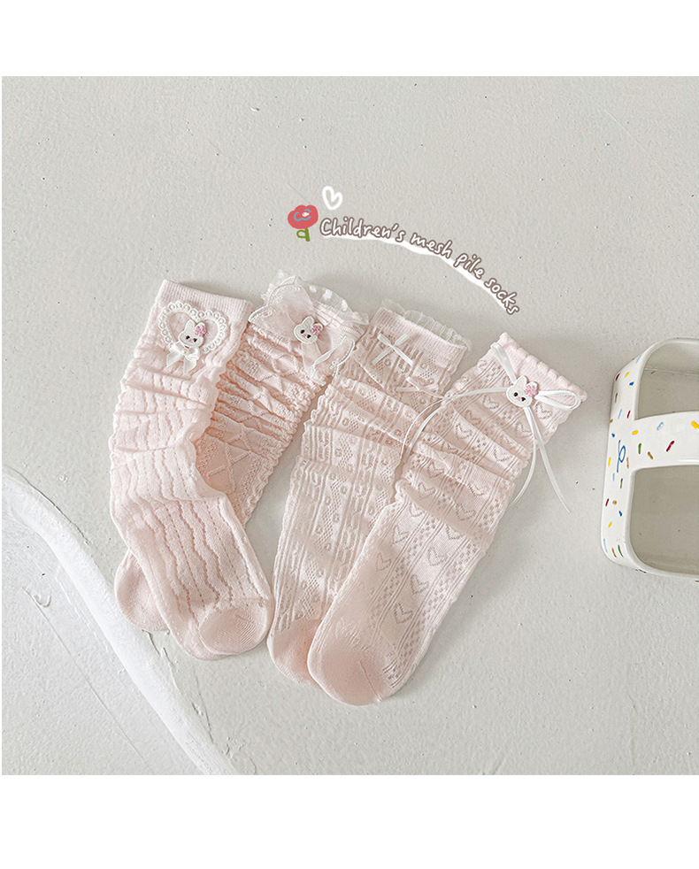 어린이 양말 소녀 여름 아기 더미 레이스 보우 미드 튜브 양말 핑크 공주 양말 여름 송아지 양말