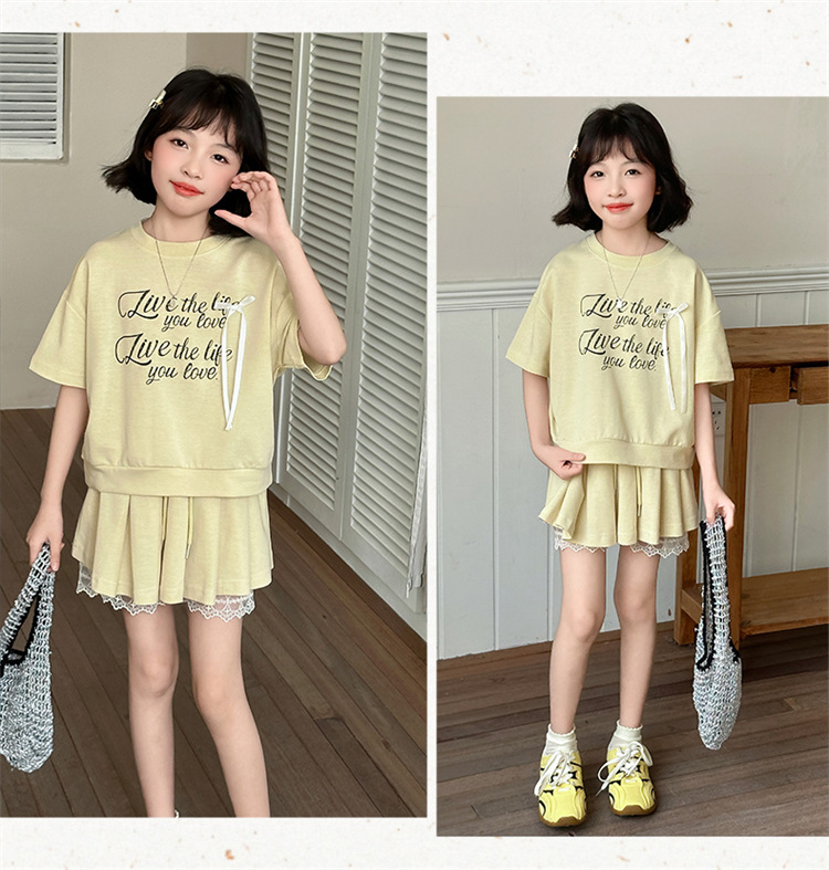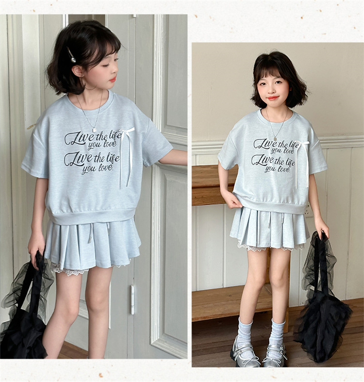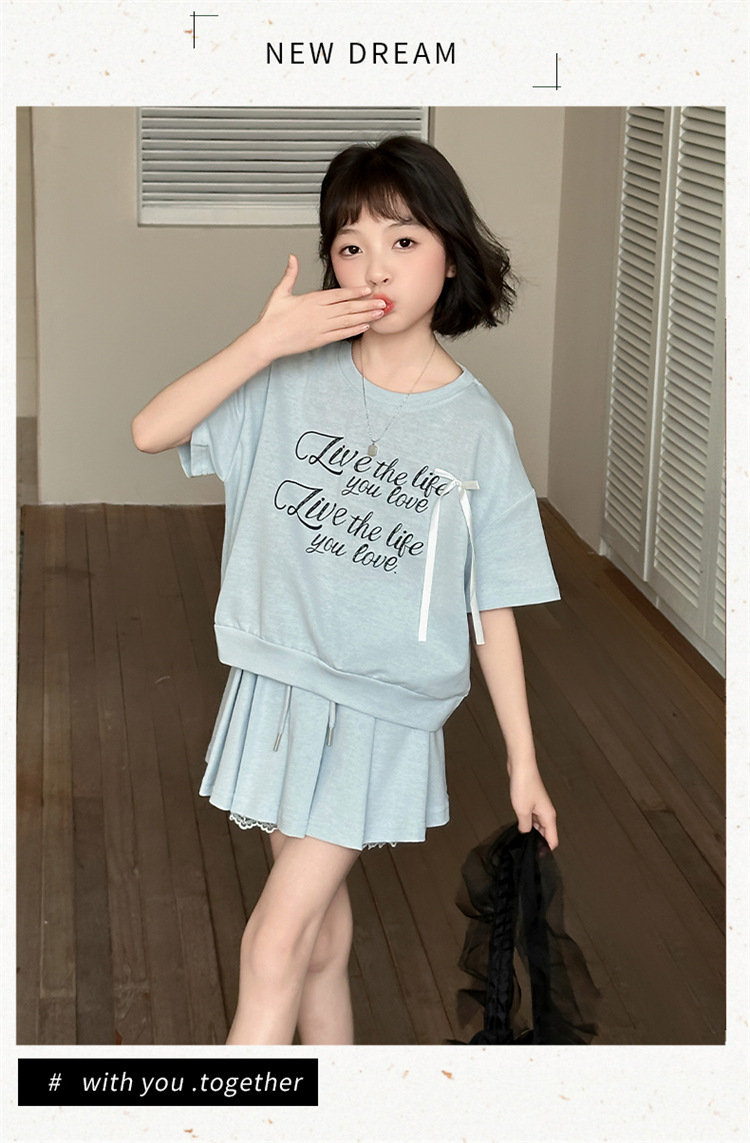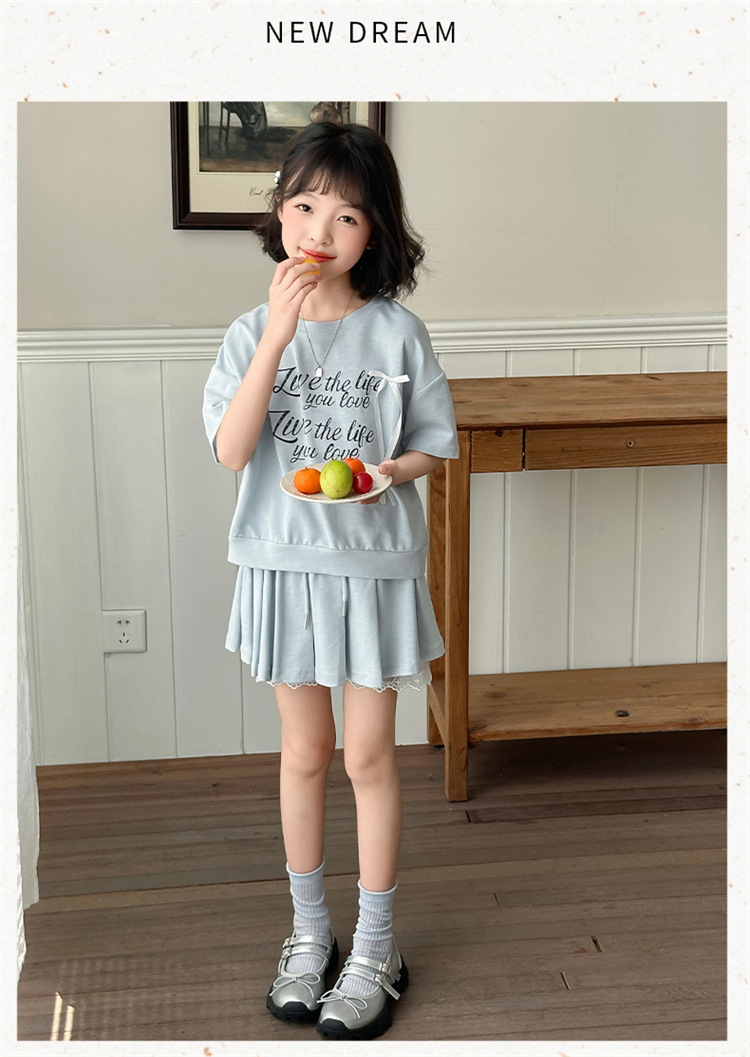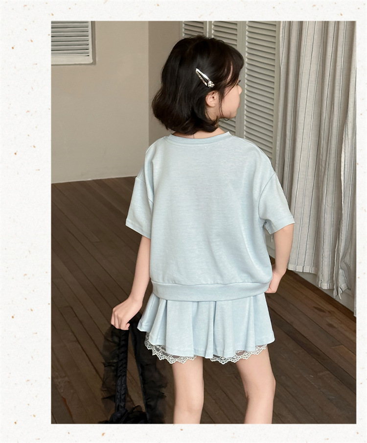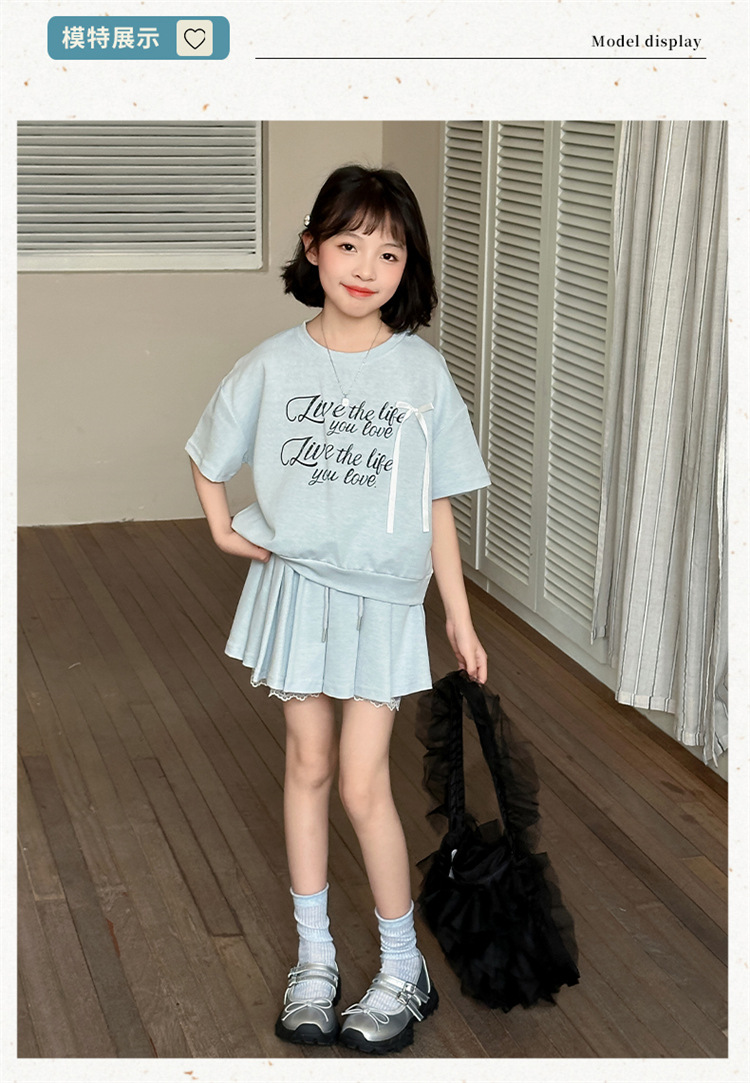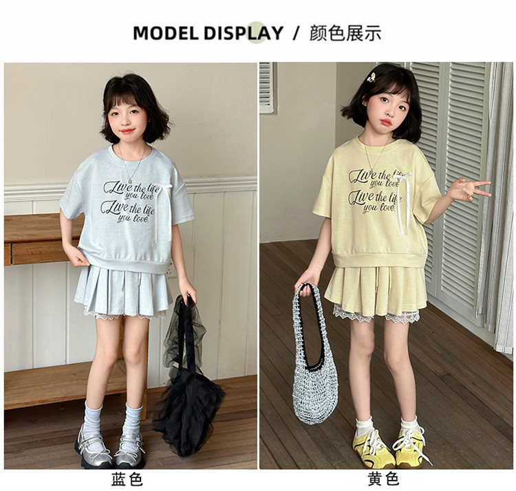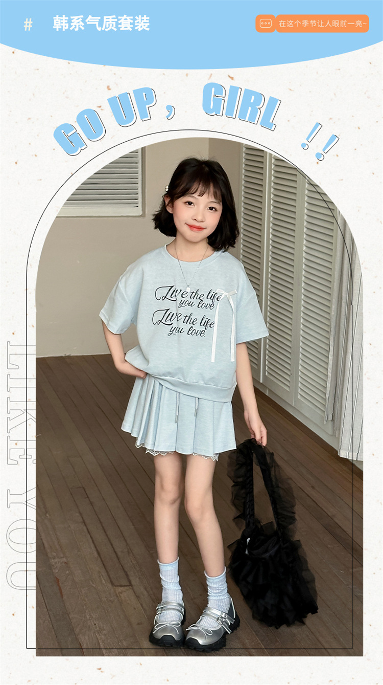 여자 세트 스커트 2025 새 여름 어린이 한국 스포츠 캐주얼 반팔 스커트 투피스 소녀의 여름 원피스스토어 가기
