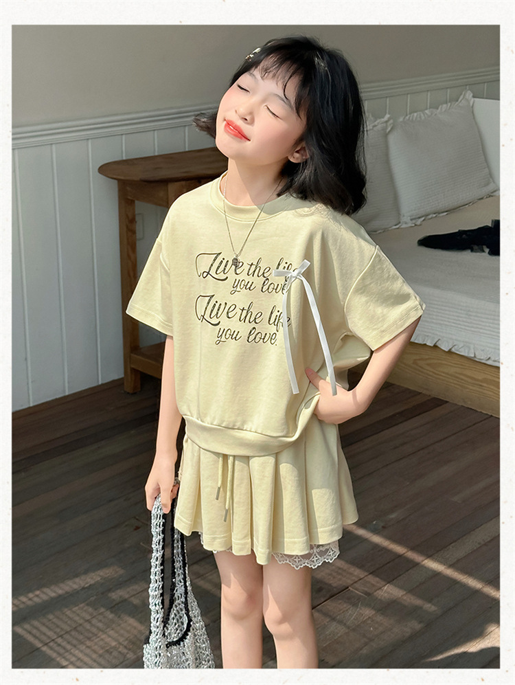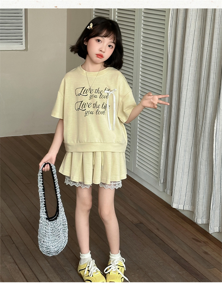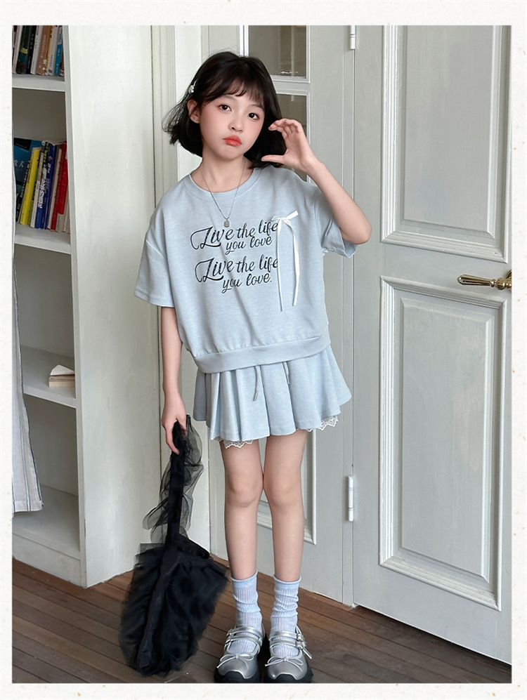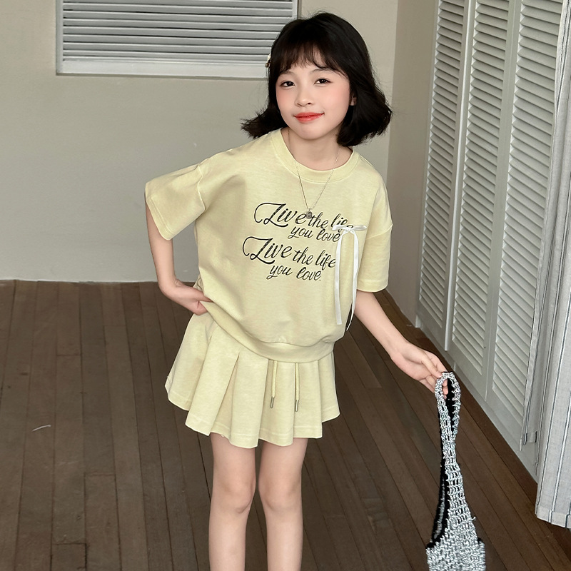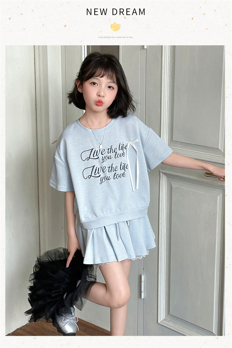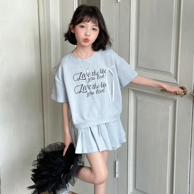 여자 세트 스커트 2025 새 여름 어린이 한국 스포츠 캐주얼 반팔 스커트 투피스 소녀의 여름 원피스