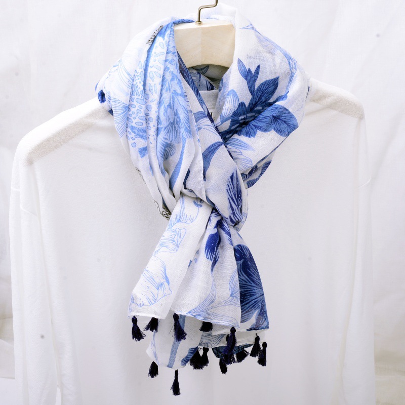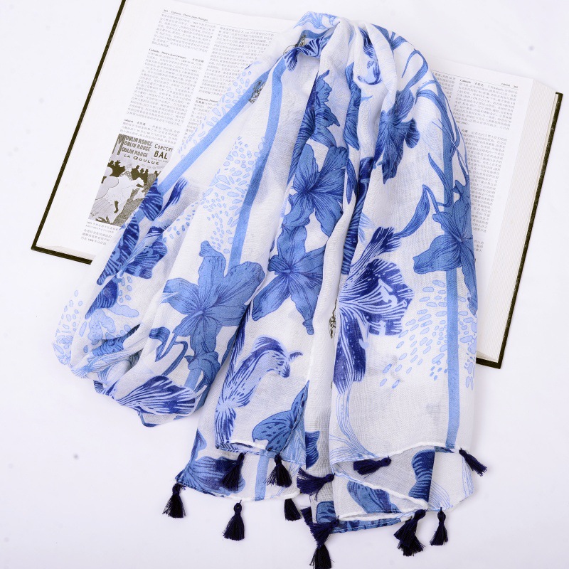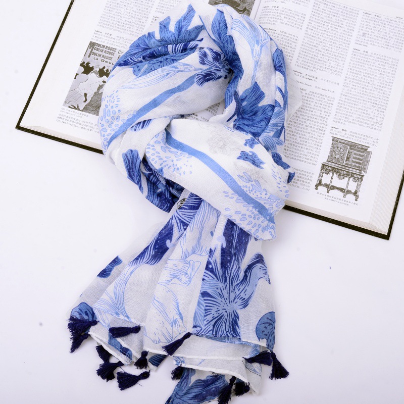 새로운 대외 무역 오리지널 블루 프린트 코튼과 린넨 스카프 복고풍 민족 스타일 초대형 여행 자외선 차단제 목도리 비치 타월스토어 가기