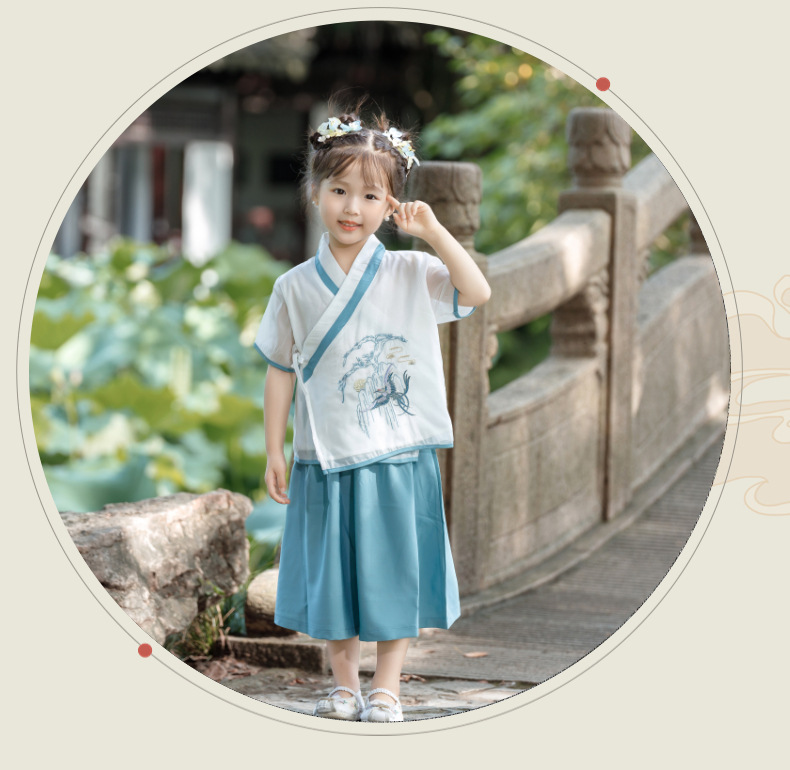 Hanfu 어린이 여름 정장 2025 새로운 중국 스타일 아기 새로운 중국 스타일 당나라 정장 어린이 여름 얇은 의상스토어 가기