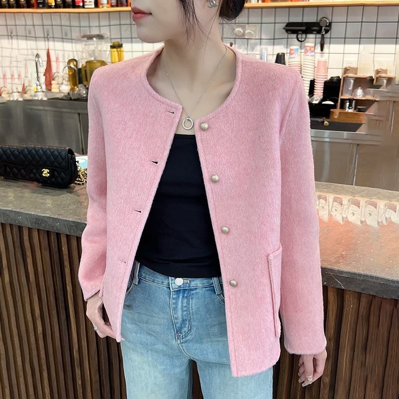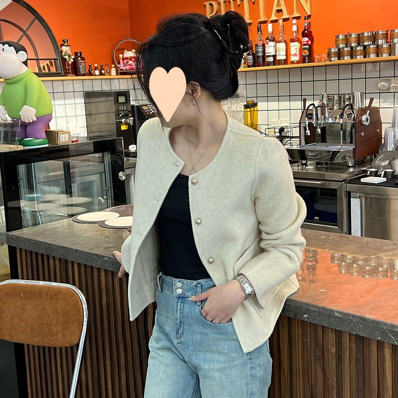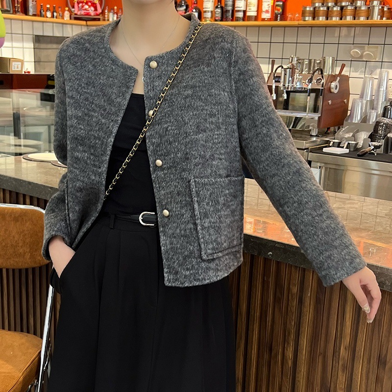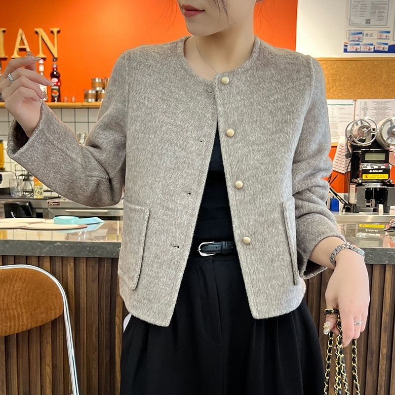 2025 가을과 겨울 새로운 양면 양모 코트 여성의 짧은 느슨한 양모 간단한 샤넬 스타일 모직 코트스토어 가기