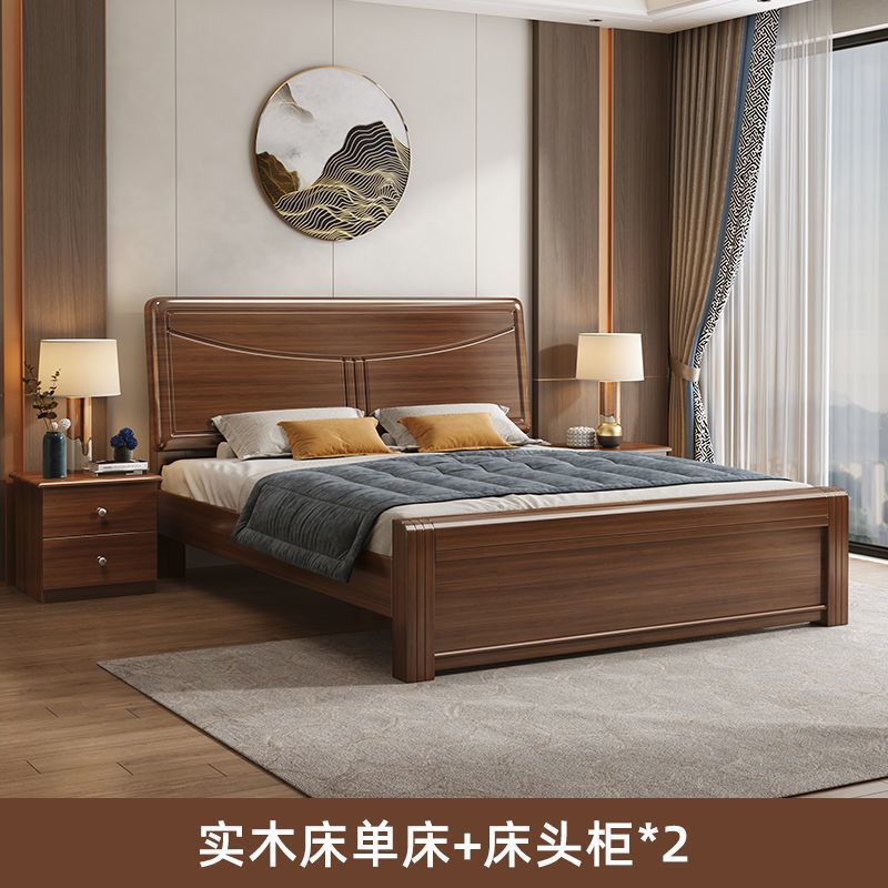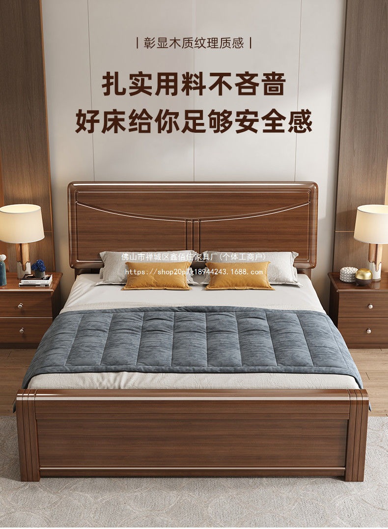단단한 나무 침대 새로운 중국 스타일 1.8 m 마스터 침실 퀸 침대 간단한 현대 가구 1.2 m 저장 침대 경제적 인 더블 침대