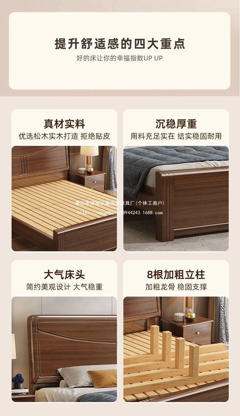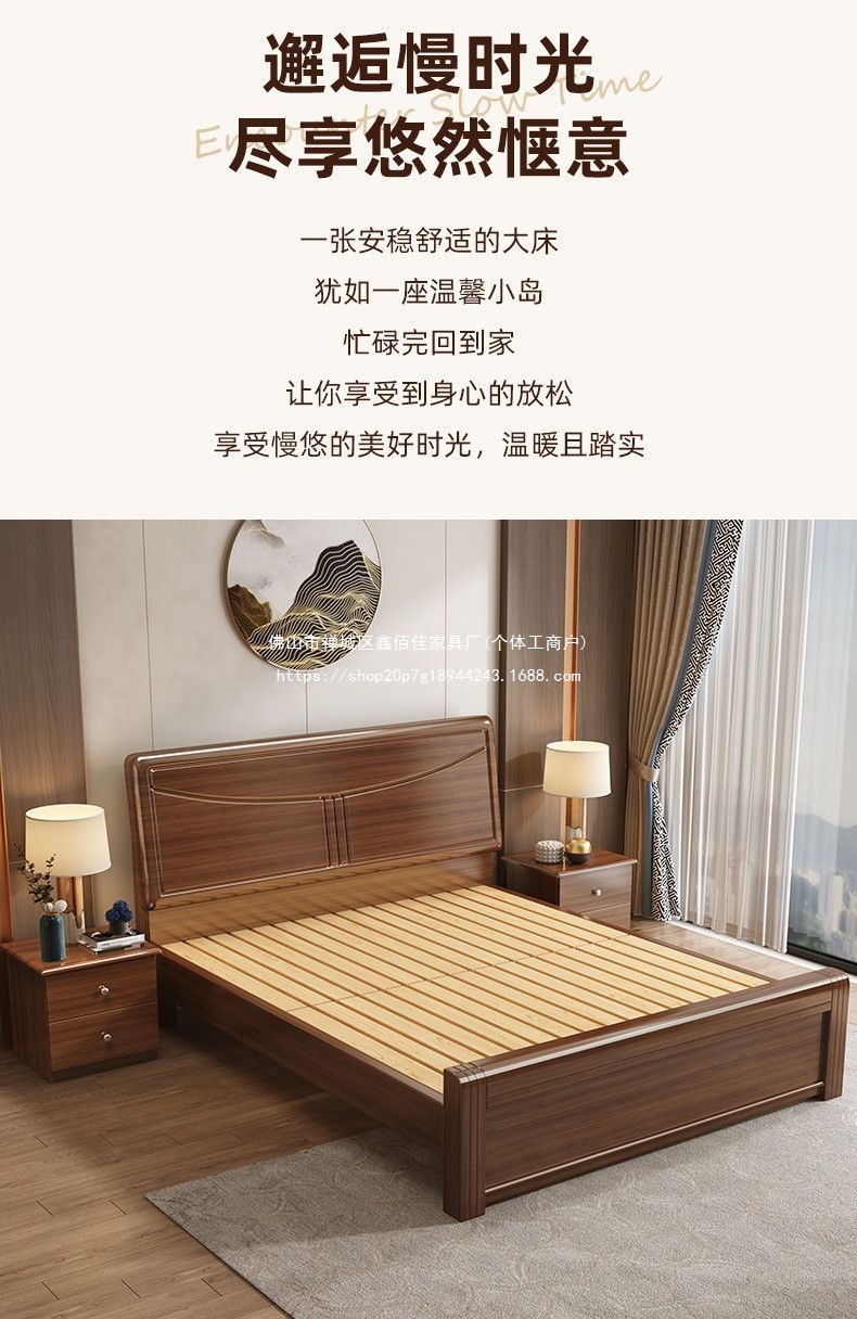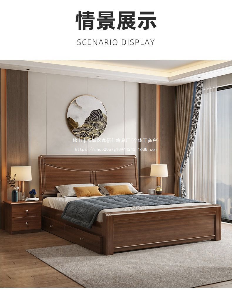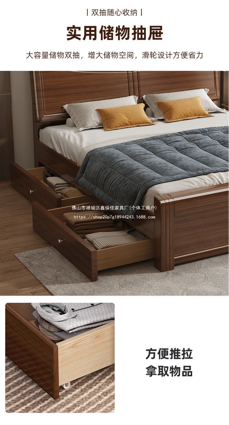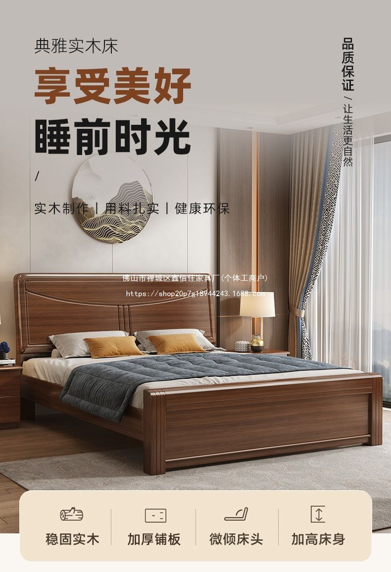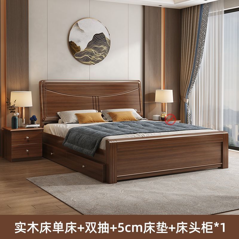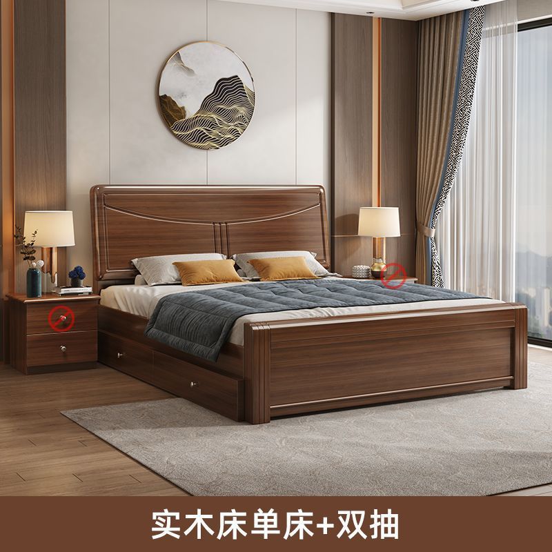 단단한 나무 침대 새로운 중국 스타일 1.8 m 마스터 침실 퀸 침대 간단한 현대 가구 1.2 m 저장 침대 경제적 인 더블 침대스토어 가기