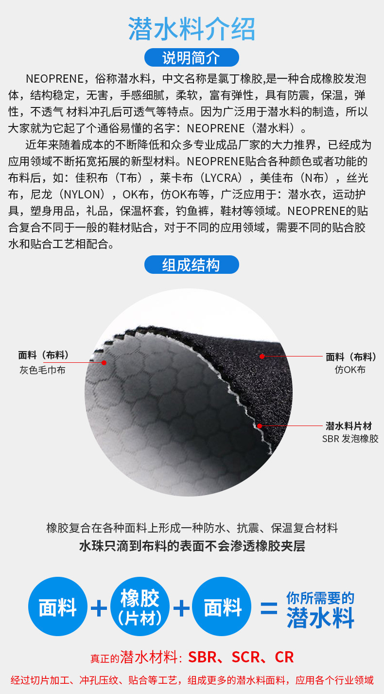 SBR 다이빙 소재 컵홀더 가방 복합 다이빙 원단 컴퓨터 가방 손잡이 커버 복합 원단 삼중 방수 원단 공급