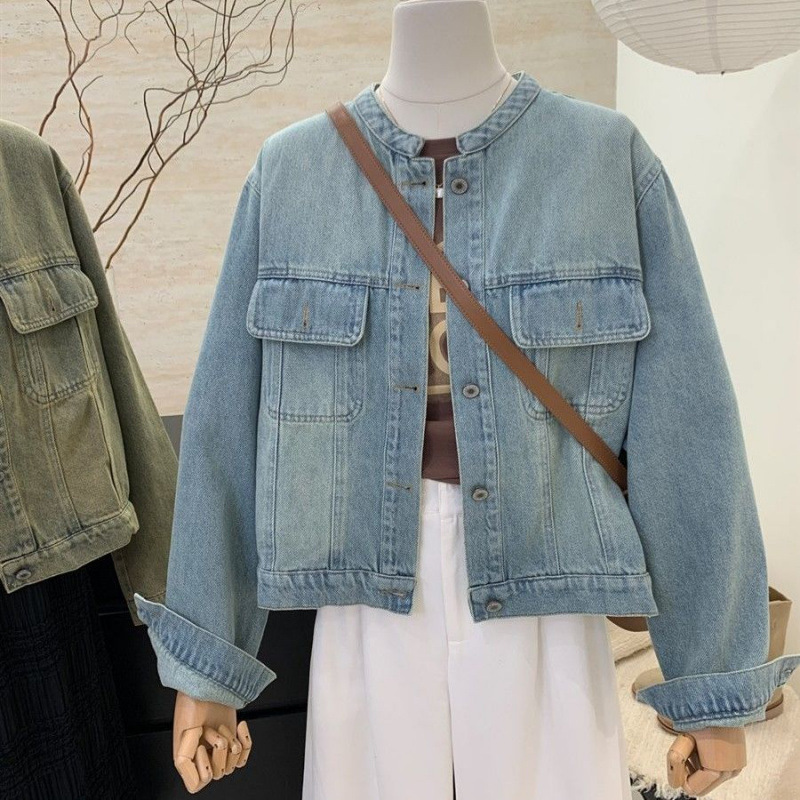 빈티지 라운드 넥 데님 재킷 여자 2025 봄 새로운 한국 스타일 루즈 캐주얼 올 매치 롱 슬리브 재킷 트렌디스토어 가기