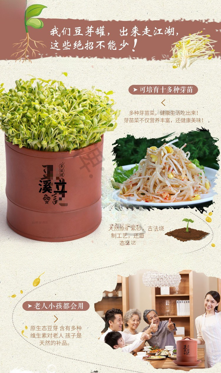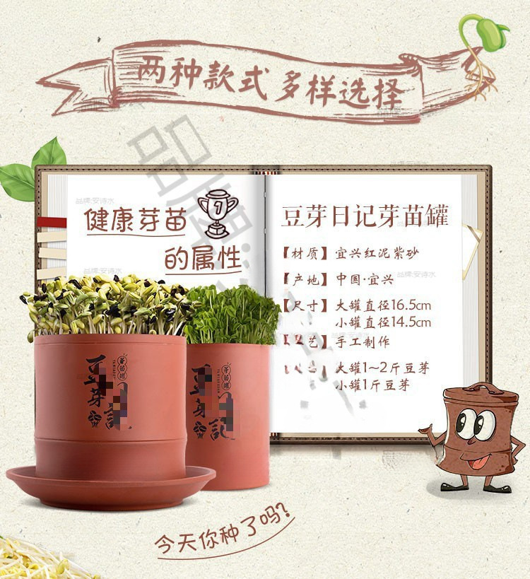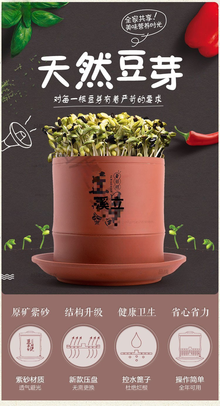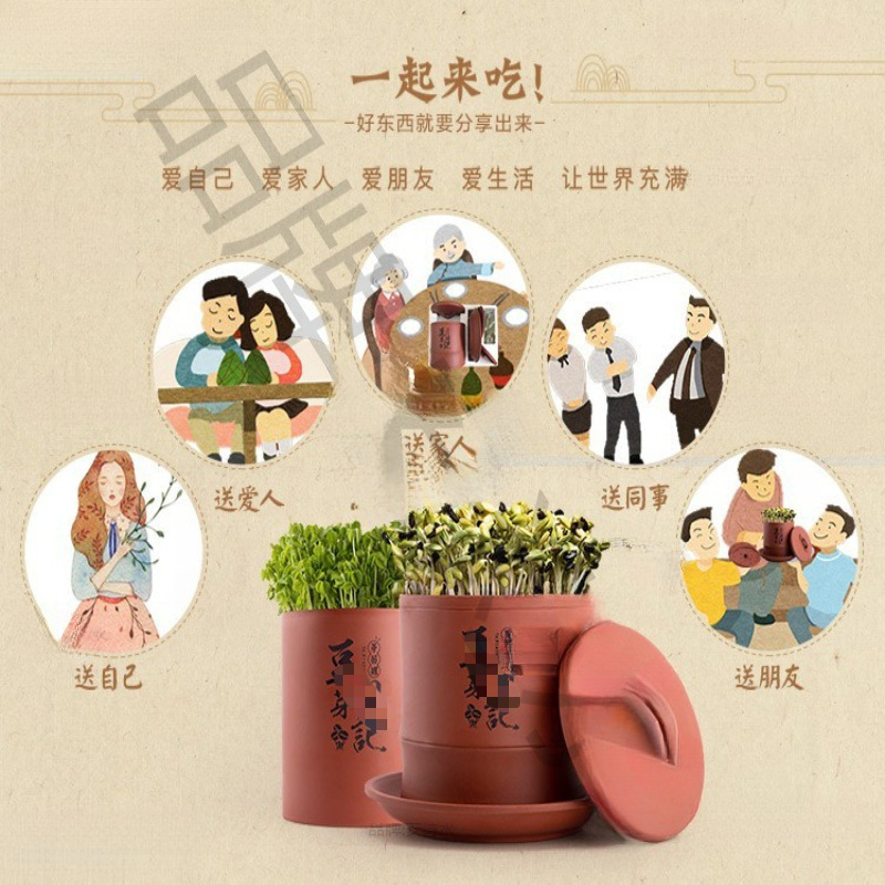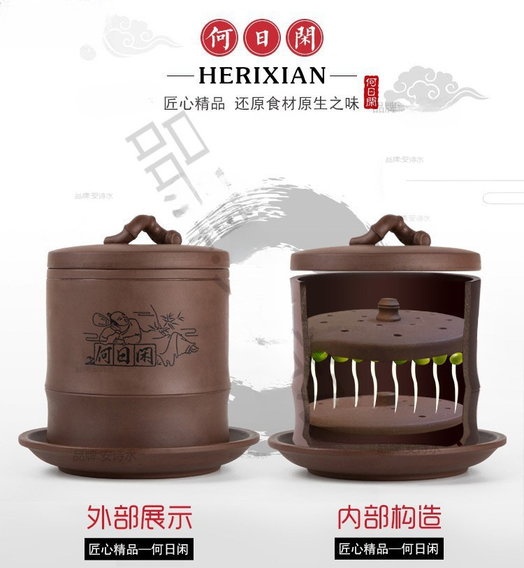 콩나물 항아리, 생콩나물 기계, 가정용 도자기, 완전 자동, 대용량, 콩나물 화분, 보라색 모래 수제 통스토어 가기
