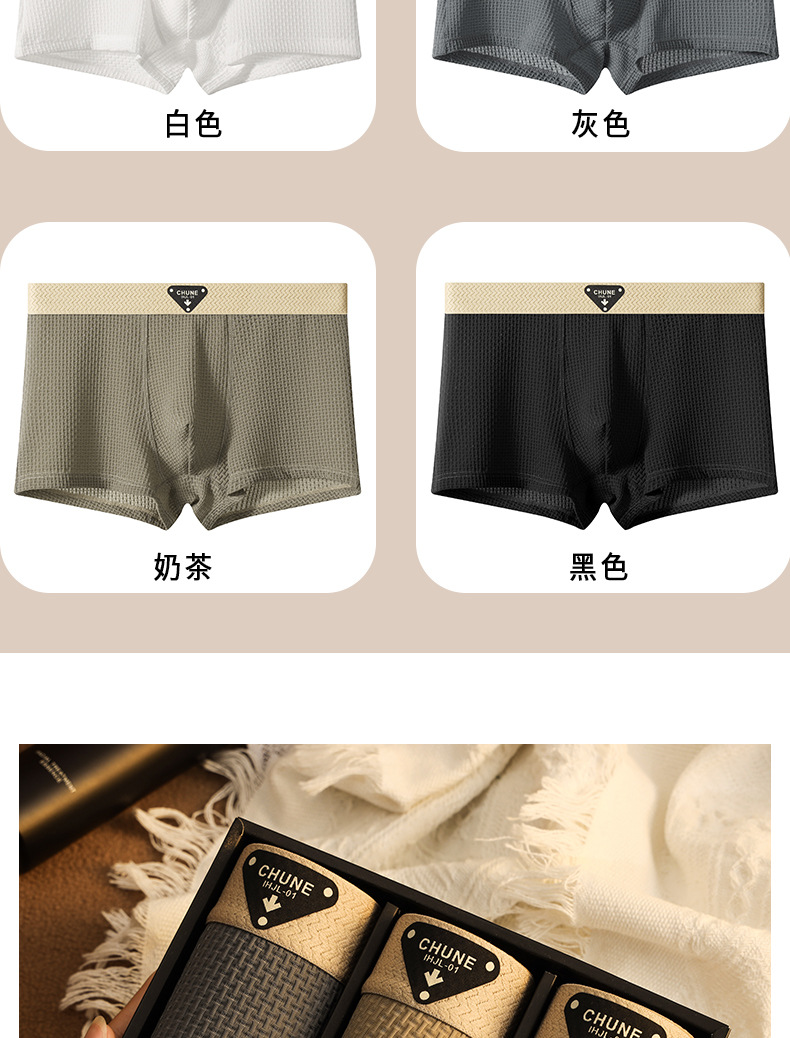 새로운 아이스 실크 남자 속옷 남자 봄과 여름 시원한 통기성 복서 바지 양각 솔리드 컬러 미드 허리 남자 4 코너 바지스토어 가기