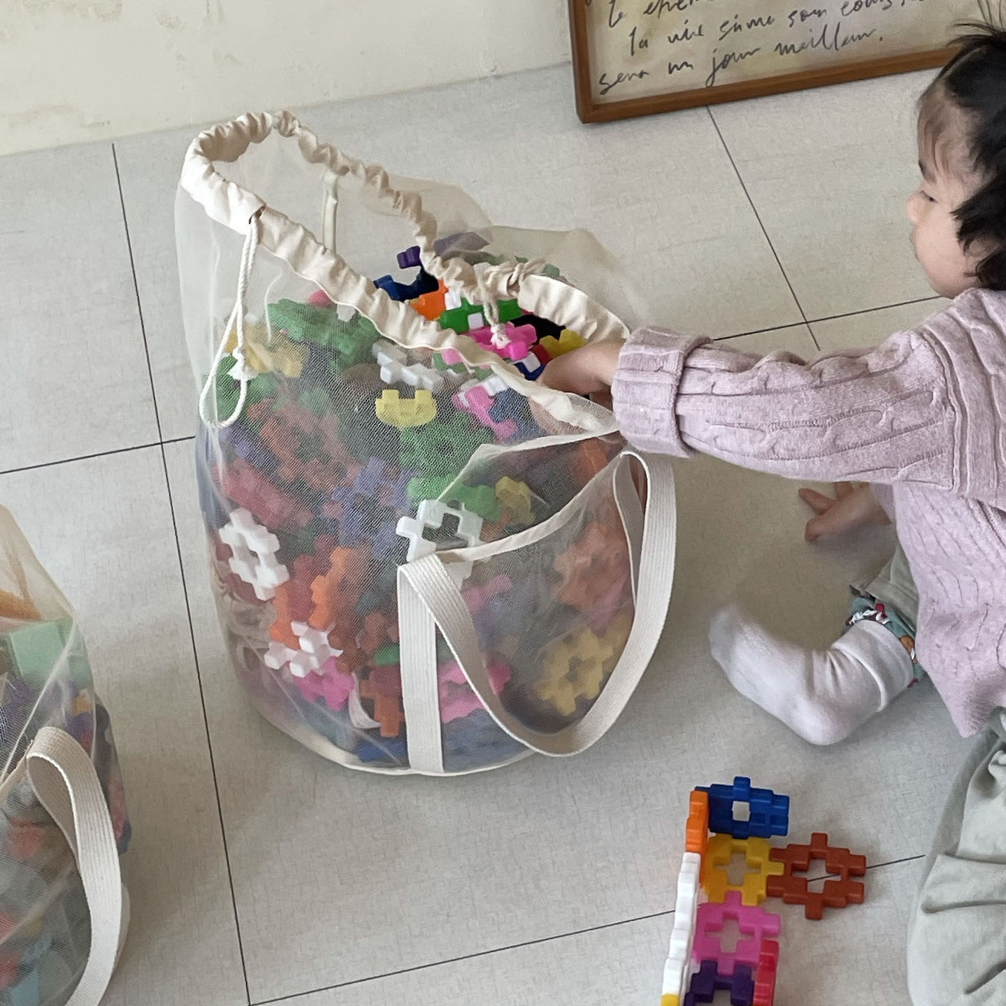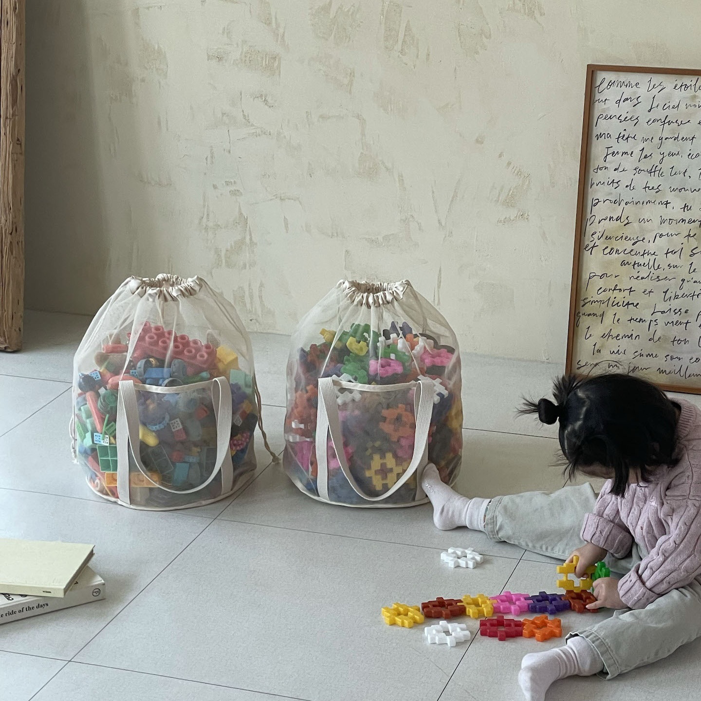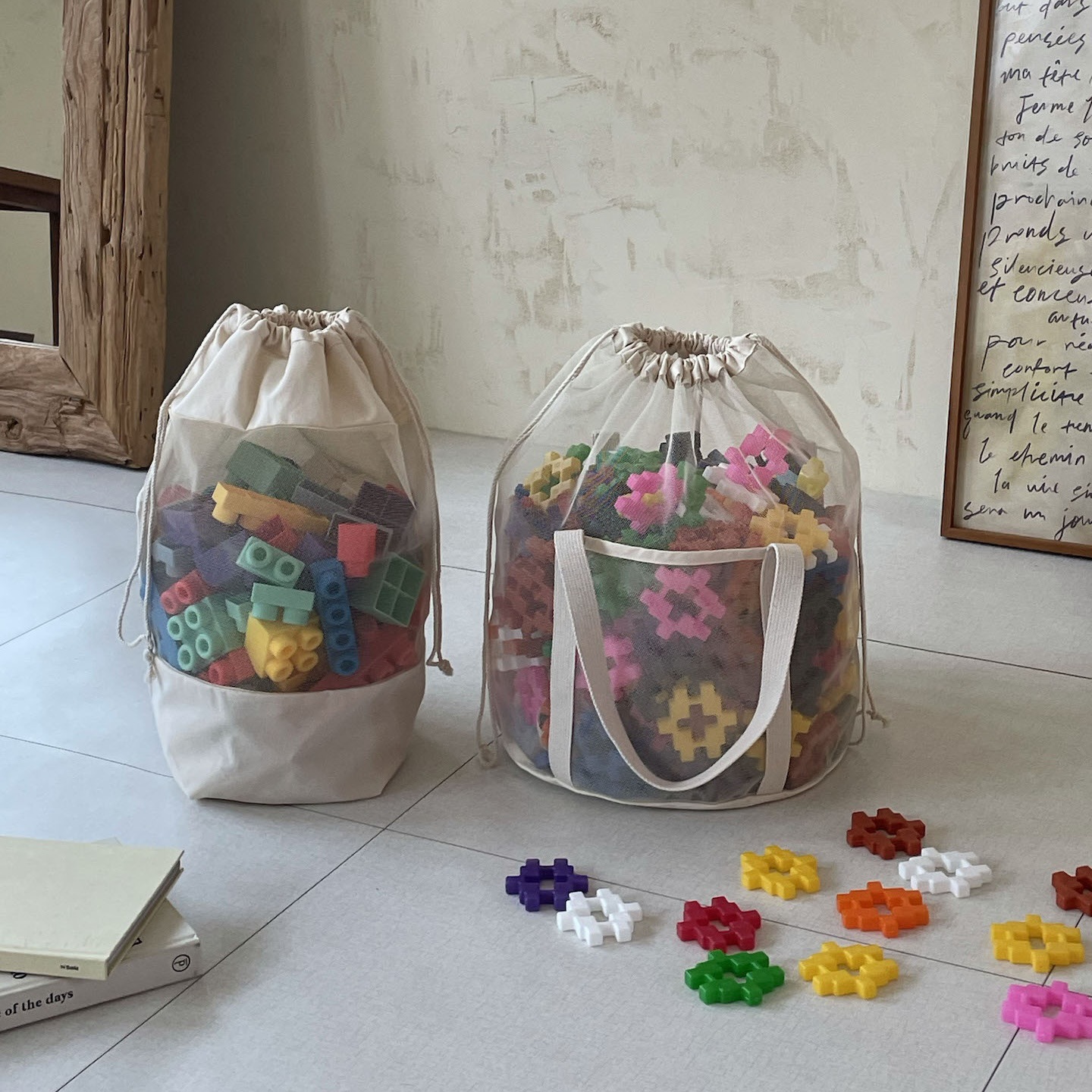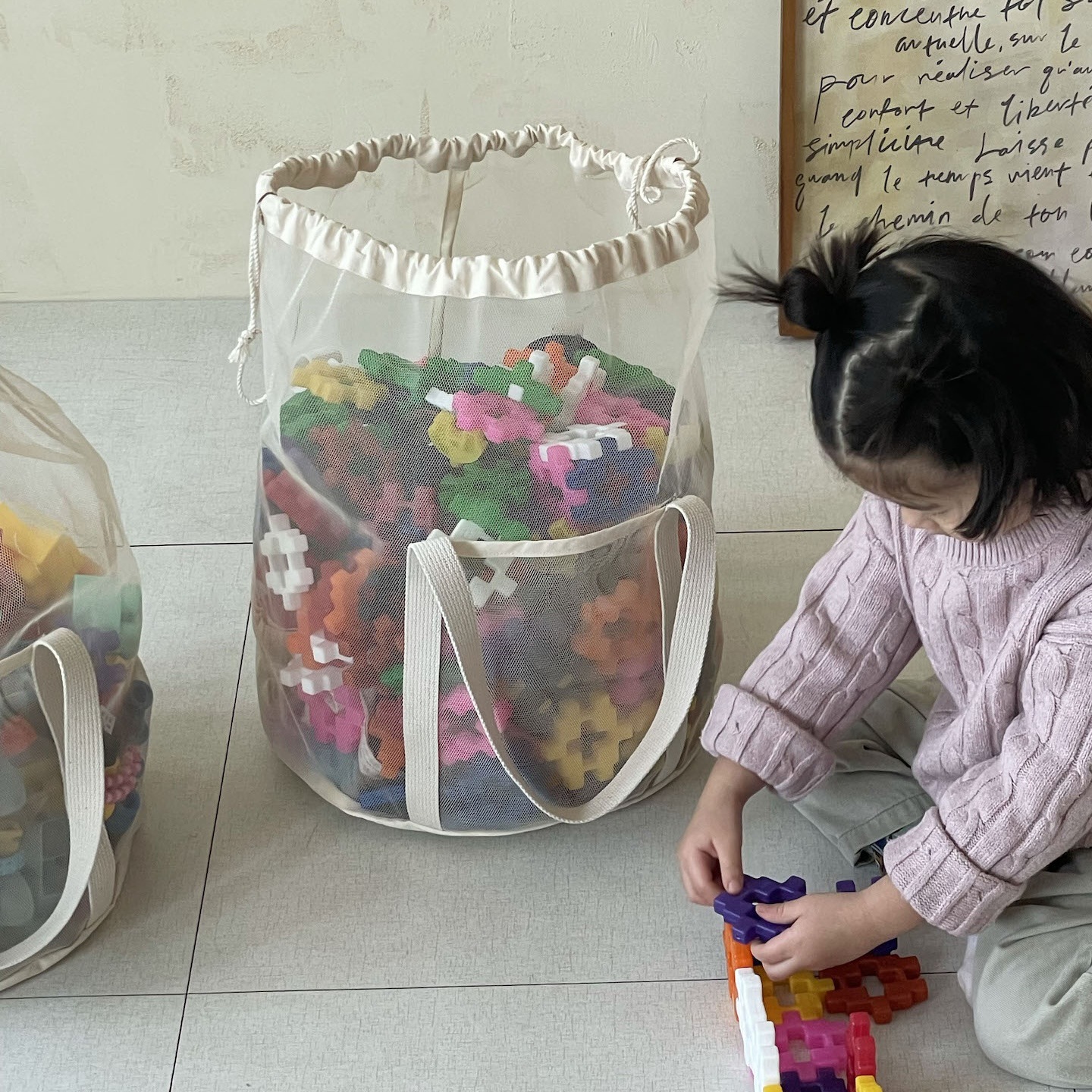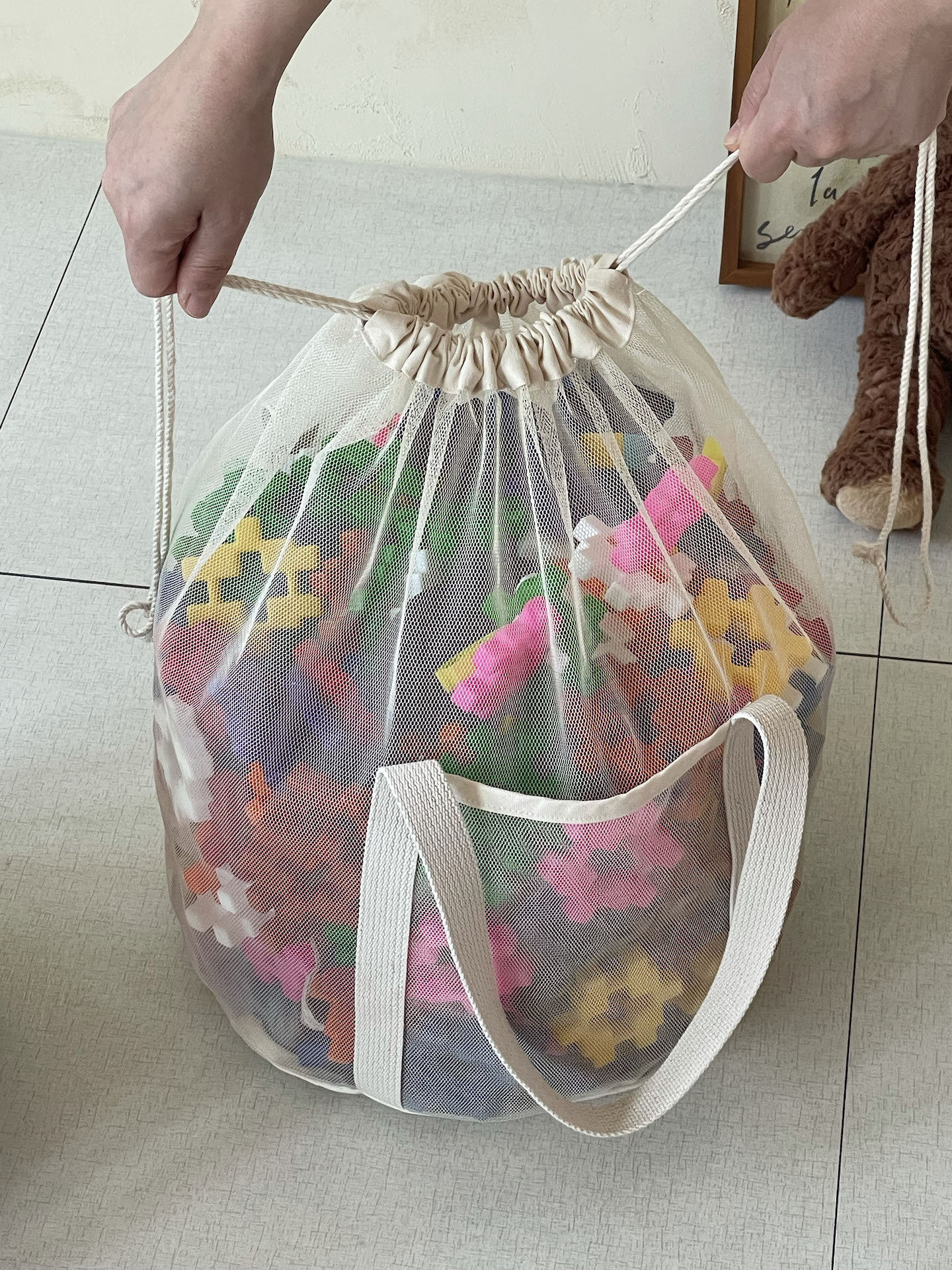 超大容量设计轻松装下积木、玩偶等零散玩具,一键束口收纳!