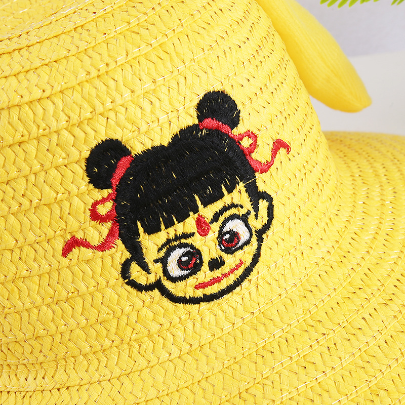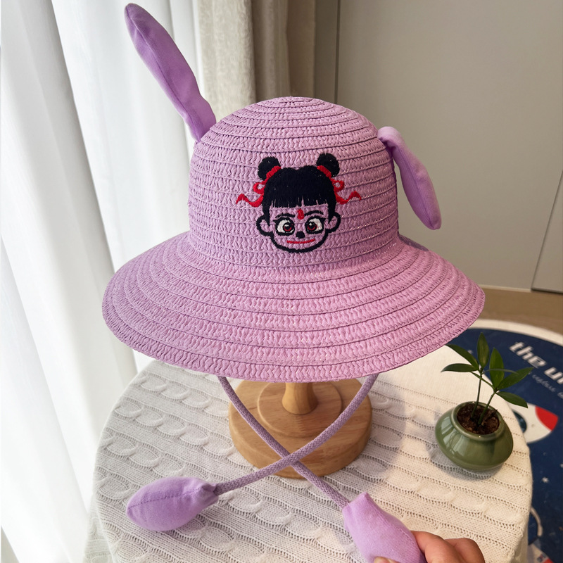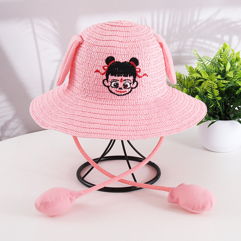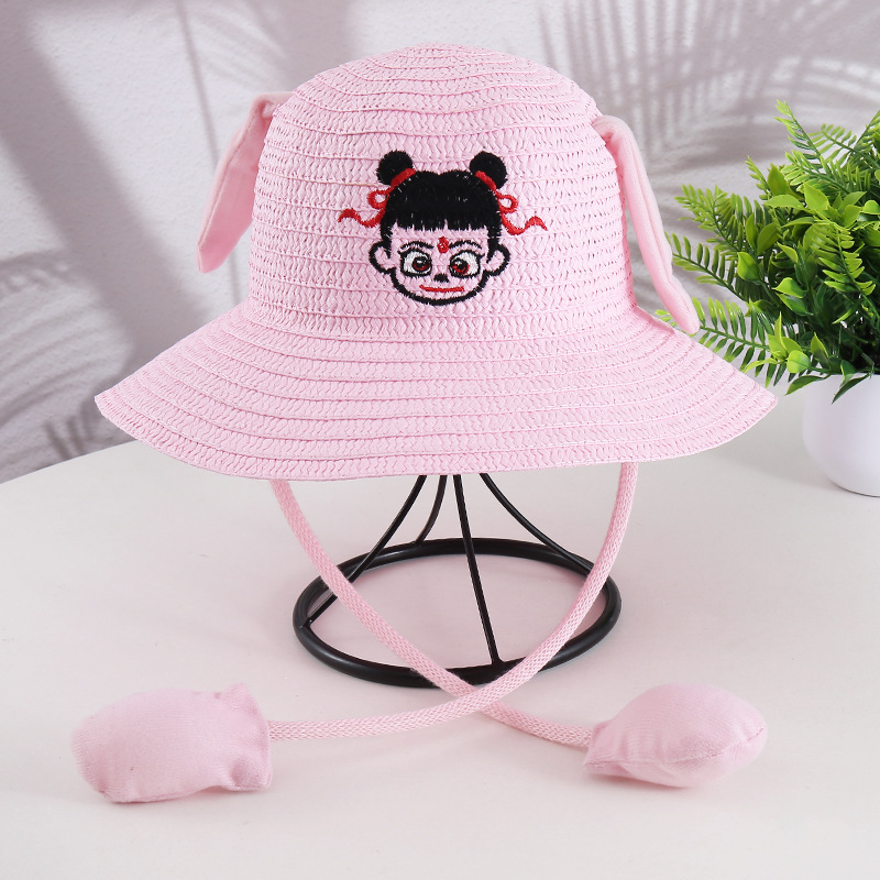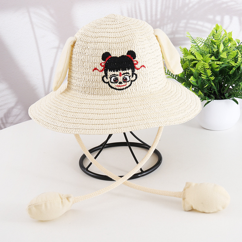 귀가 움직이는 토끼 모자 25개, 귀여운 만화 어린이 밀짚모자, 여름 자외선 차단제, Nezha 태양 모자, 에어백 모자스토어 가기