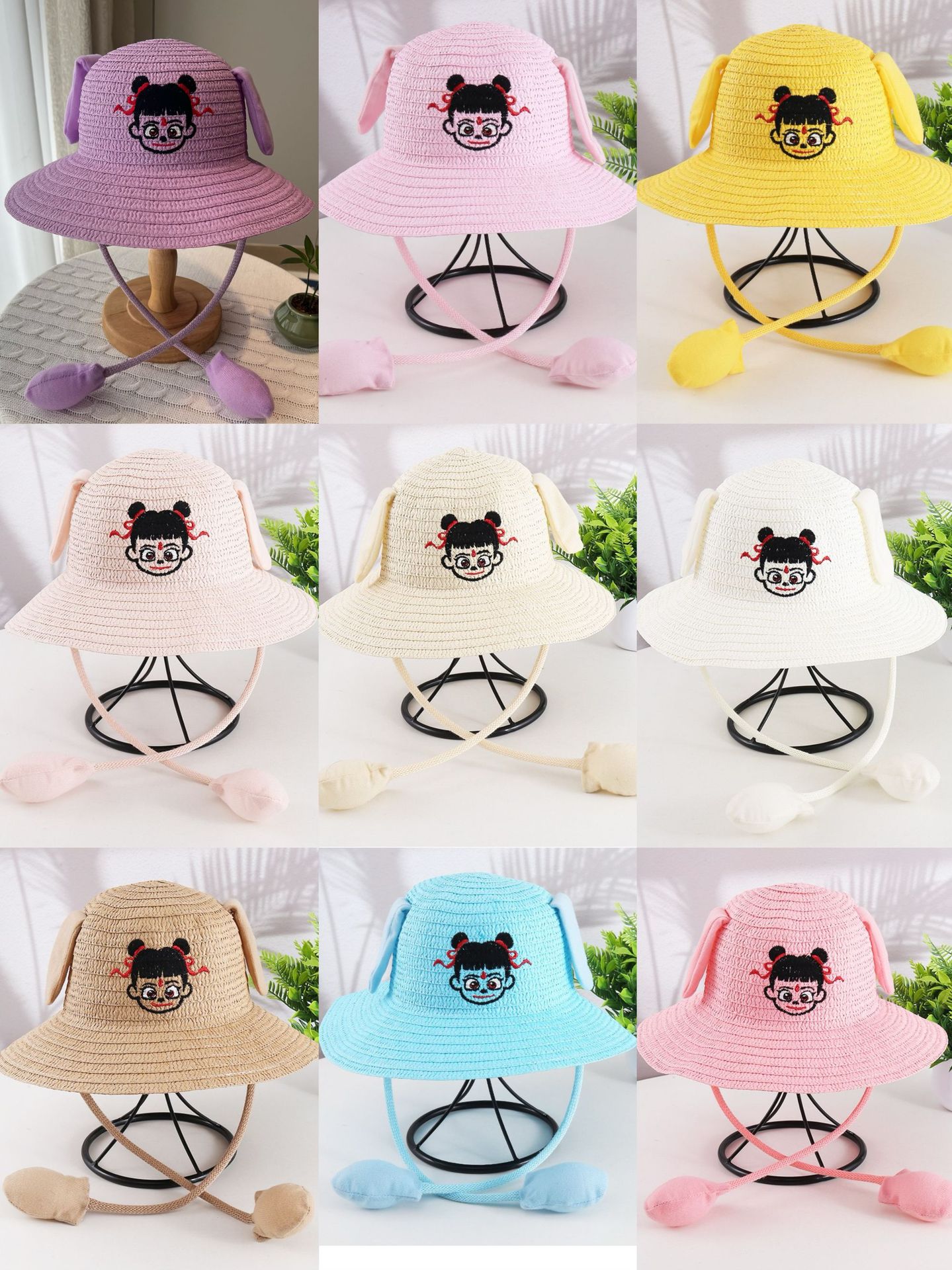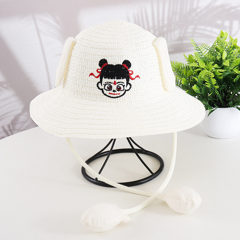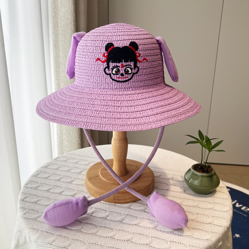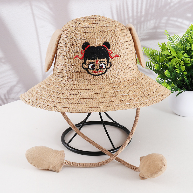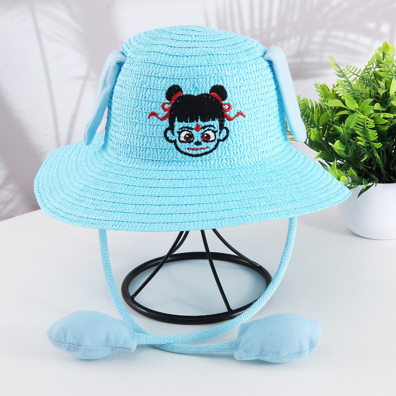 귀가 움직이는 토끼 모자 25개, 귀여운 만화 어린이 밀짚모자, 여름 자외선 차단제, Nezha 태양 모자, 에어백 모자스토어 가기