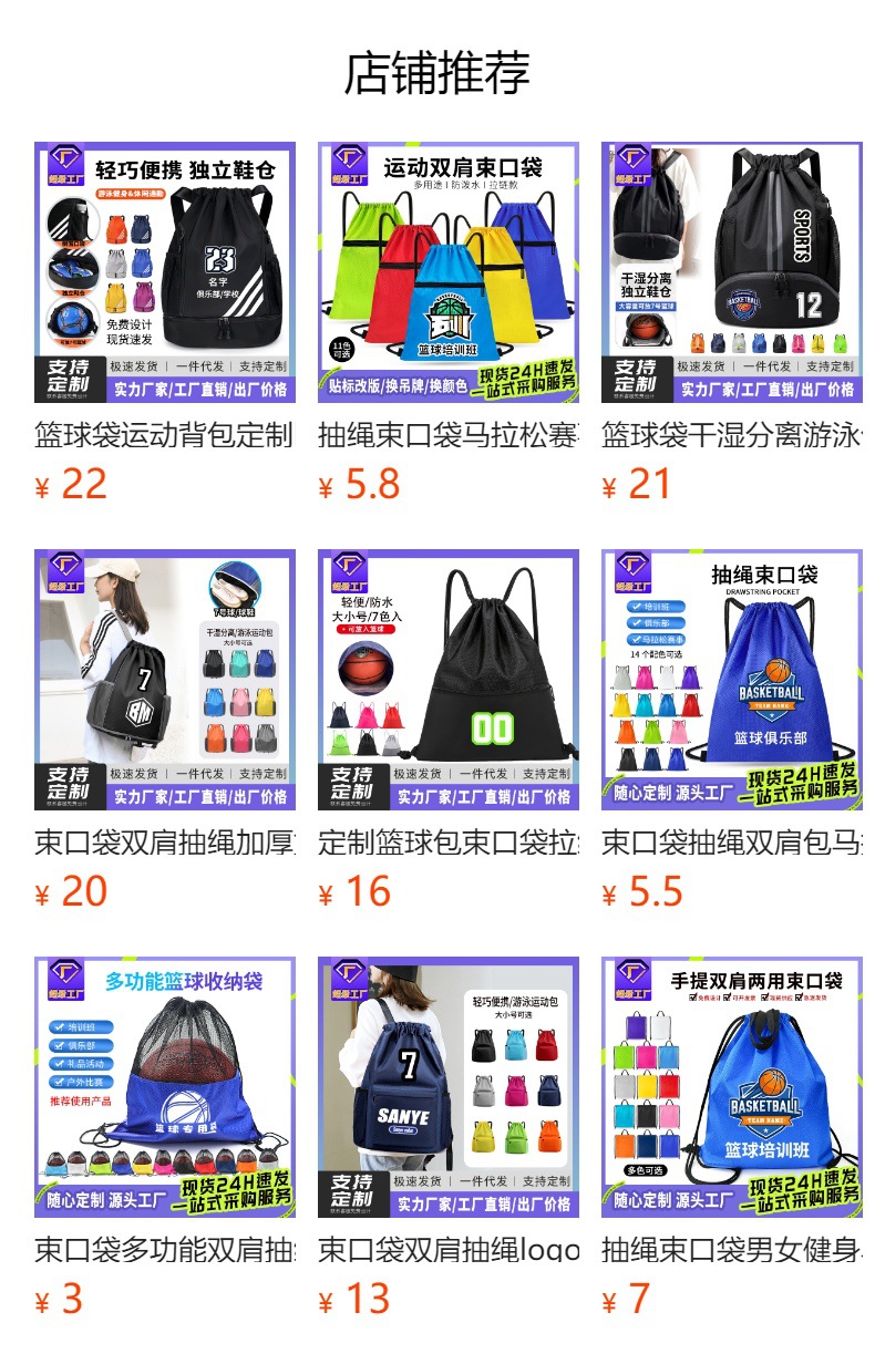 아마존 공급 대용량 번들 포켓 백팩 drawstring 배낭 스포츠 피트니스 훈련 가방 국경 간 학교 가방스토어 가기