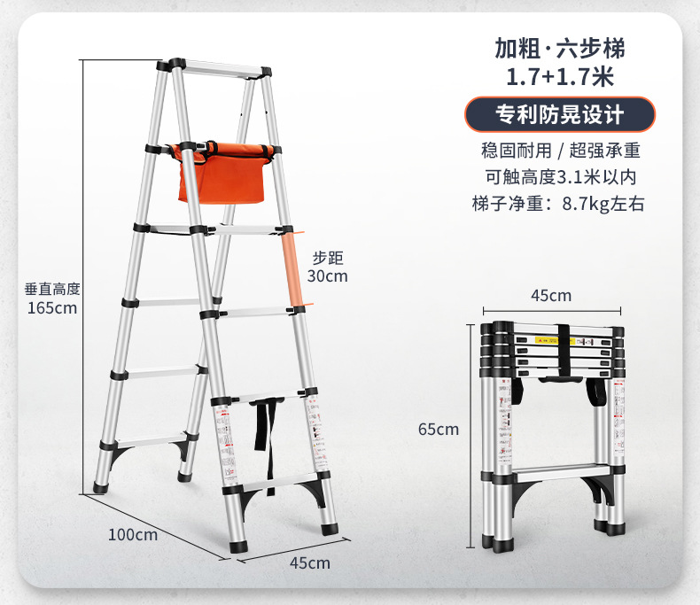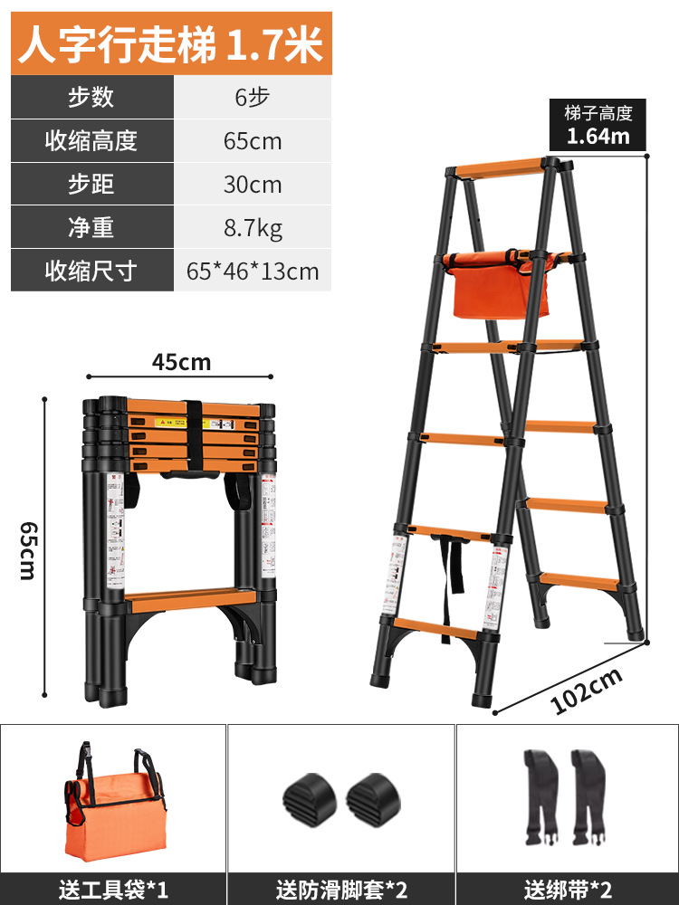 • ♕ðð♕[두꺼운 논스틱 다리 + 고경도 무봉제 강철] 보행사다리 1.7m - 텔레스코픽 사다리♕ðð♕