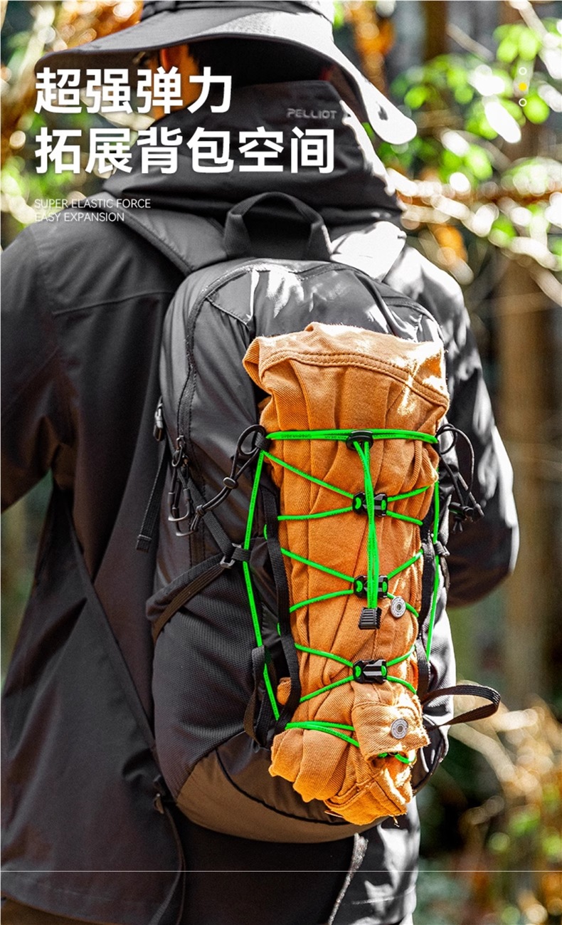 야외 등산 가방 변환 DIY Elastics 로프 매달린 버클 배낭 확장 외부 교수형 Elastics 로프 등산 스틱 고정