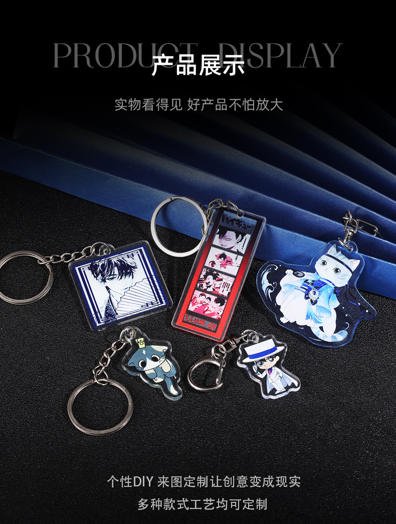아크릴 키 체인 사용자 정의 투명 에폭시 만화 애니메이션 주변 장치 diy 키 체인 작은 펜던트 도매