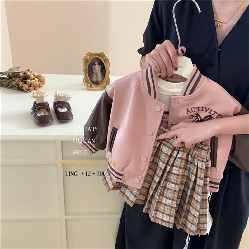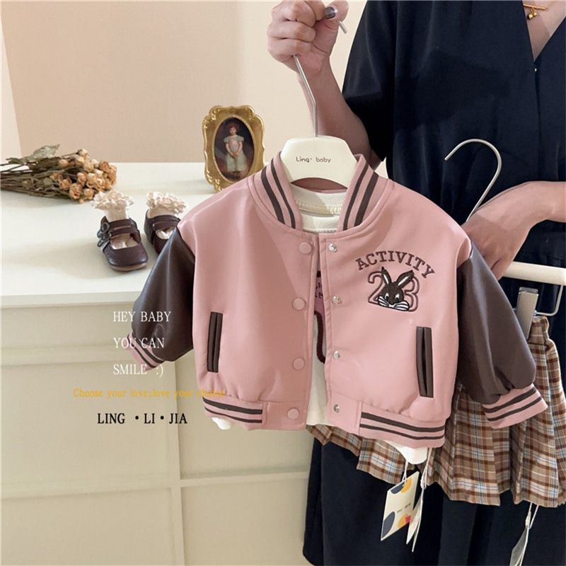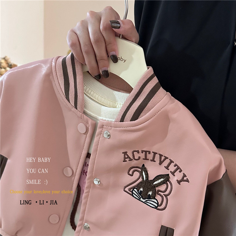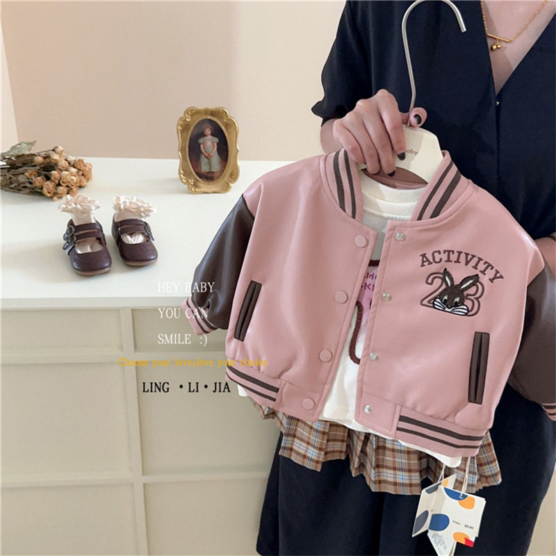 여아 패션 재킷 2025 봄 신작 귀여운 만화 가죽 탑 아기 한국 스타일 가죽 재킷 유행