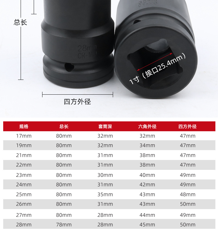1 인치 대포 슬리브 크래킹 및 교체 공압 강화 중장비 인서트 연장 노동 절약 렌치 타이어 슬리브 M &