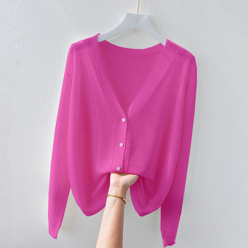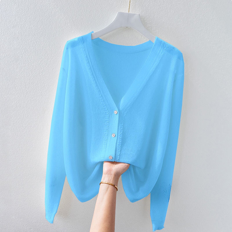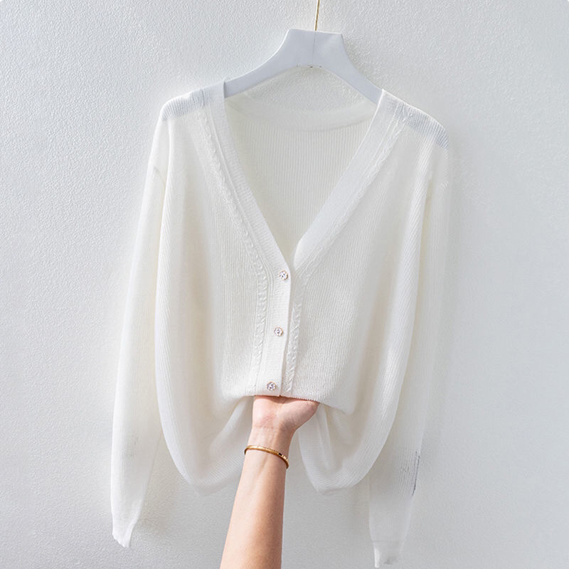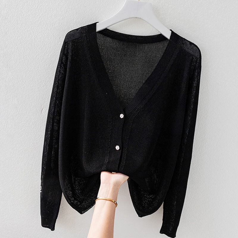 아이스 실크 니트 카디건 여성용 루즈 젠틀 스타일 숄 얇은 선 스크린 셔츠 외부 콜로션 슬링 스커트 코트 탑