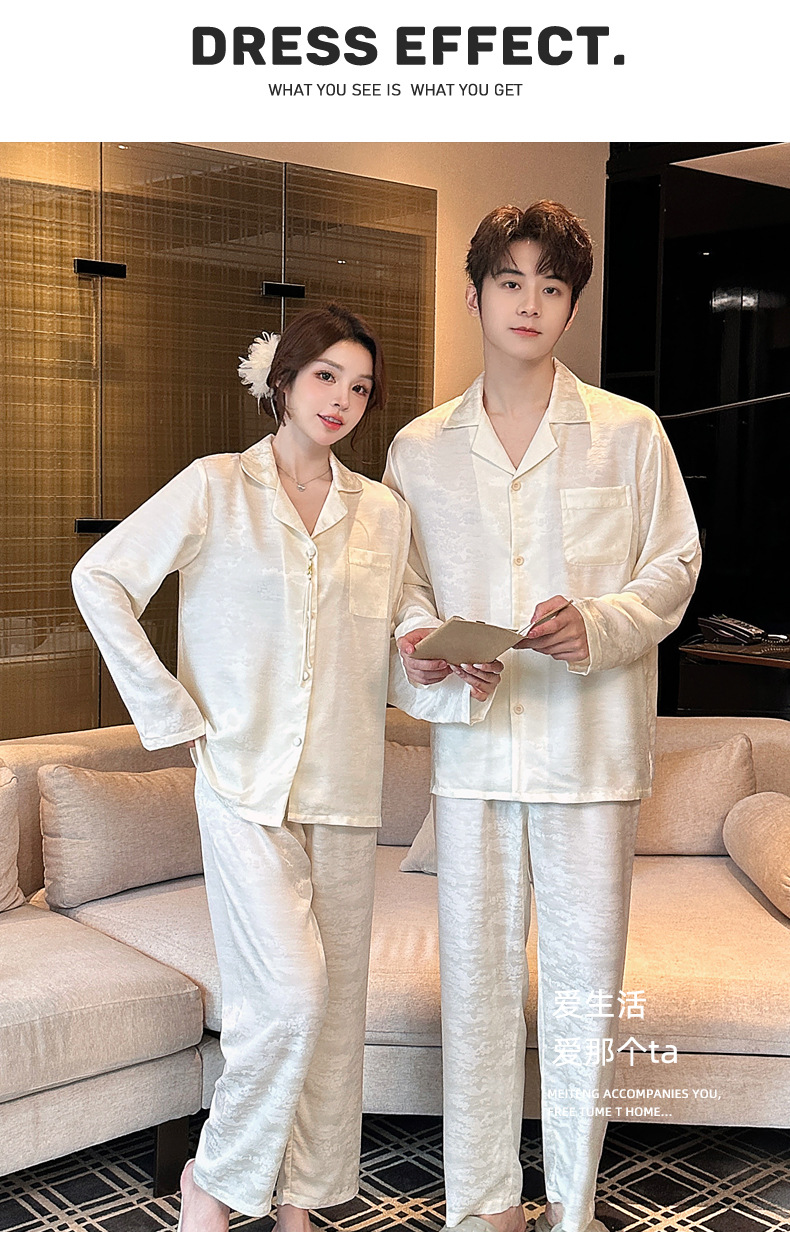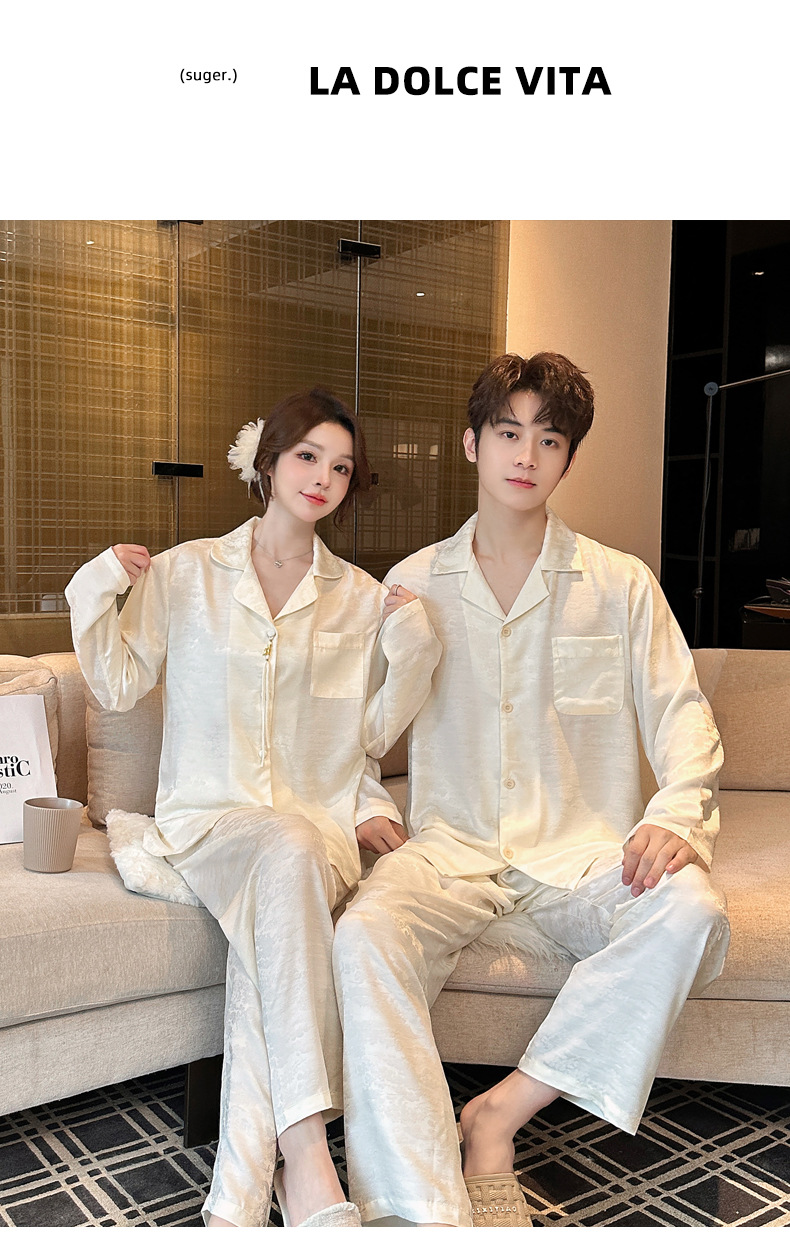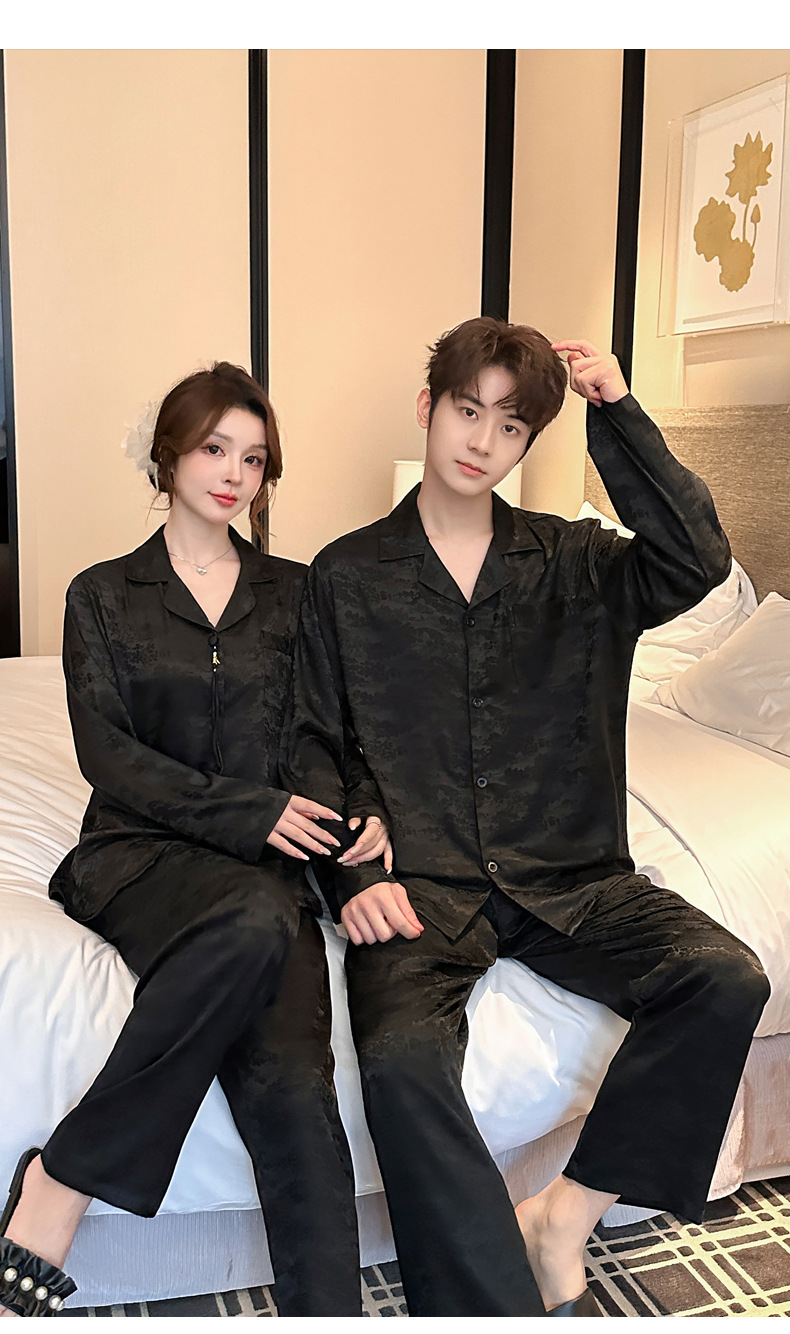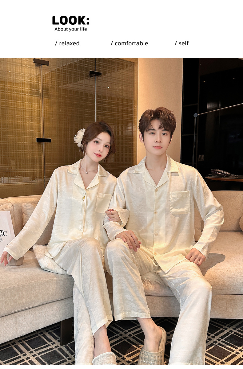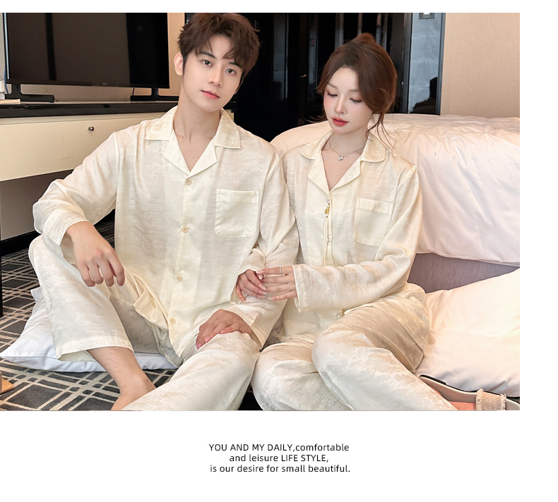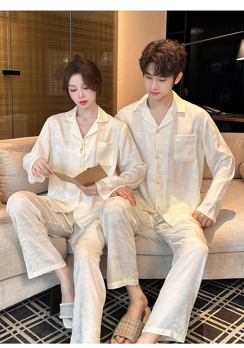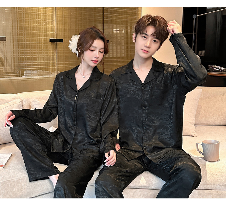 골동품 커플 잠옷 여성의 봄과 가을 새로운 자카드 하이 엔드 아이스 실크 얇은 세트 멋진 남자 홈 옷